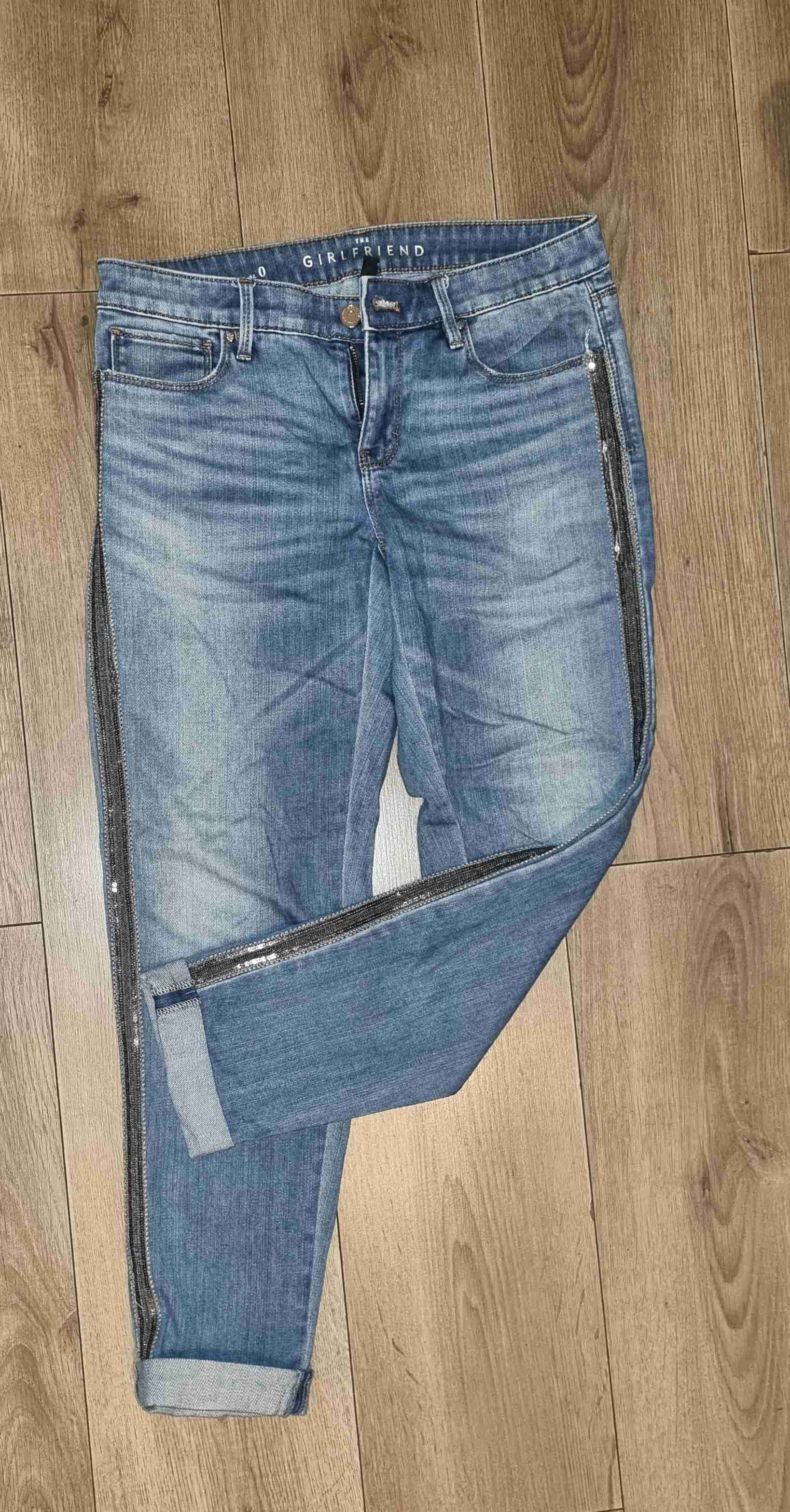 Jeans azul estilo girlfriend con aplicaciones decorativo en los costados. En buen estado, comodos y versátil. Excelente estado 👌