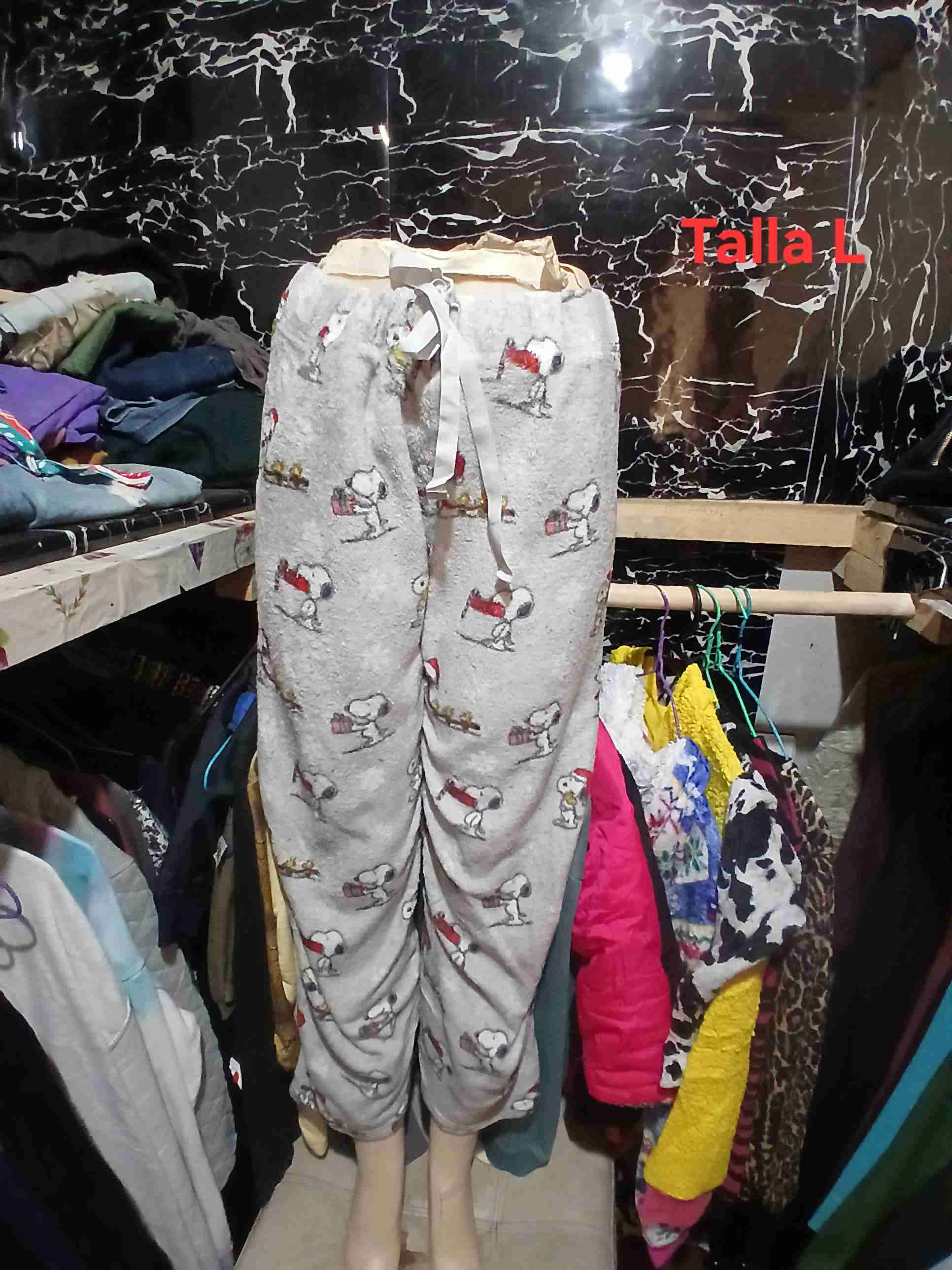 Pantalón de pijama con diseño de Snoopy en color gris. Cómodo y en buen estado para el invierno.
