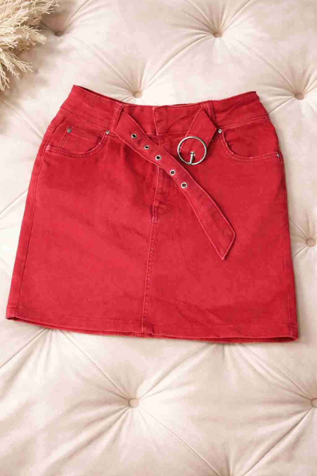 Falda roja con cinturón