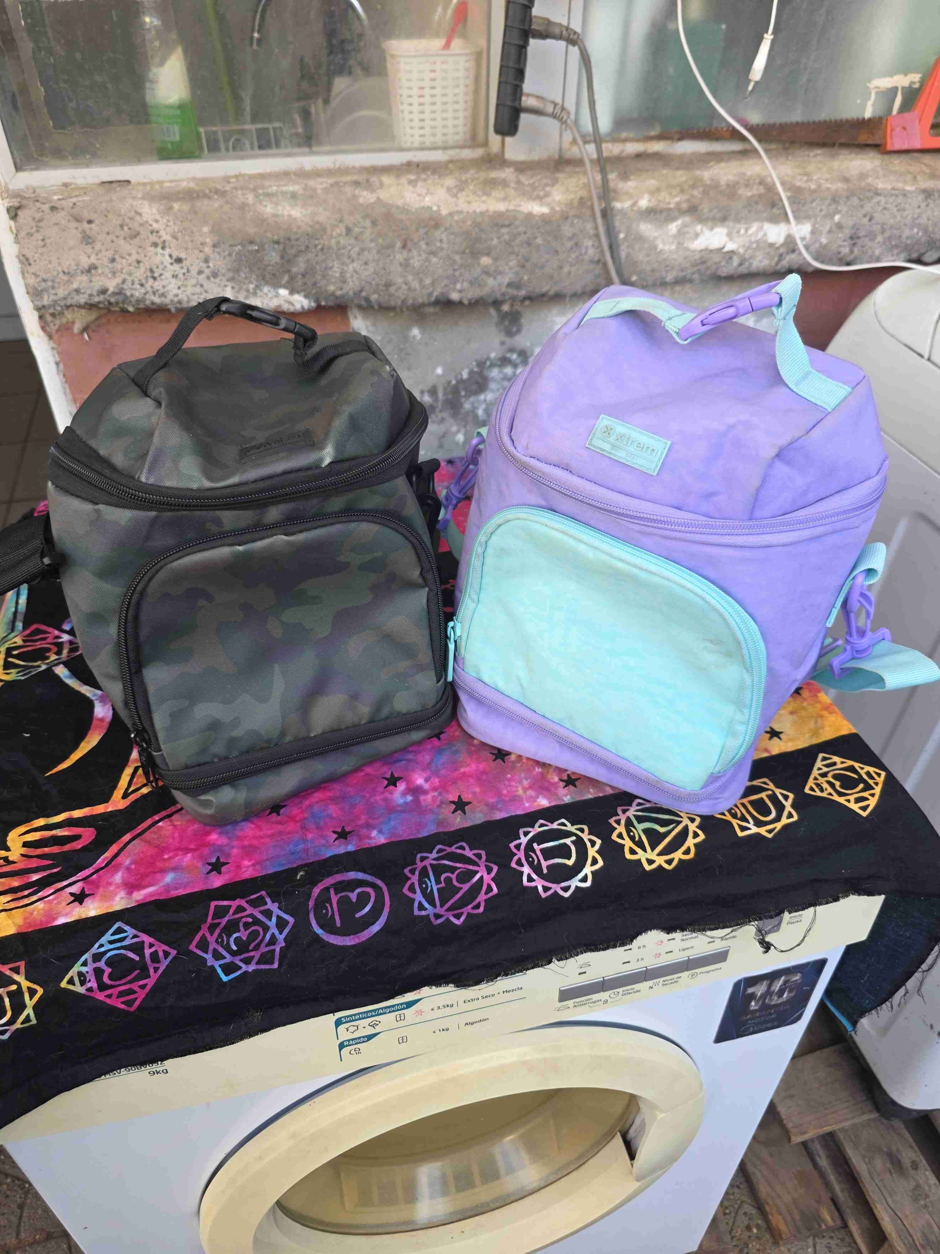 Loncheras perfectas para mantener tus alimentos frescos. Una con diseño camuflaje y otra en tonos morado y celeste. Las 2 x 25mil