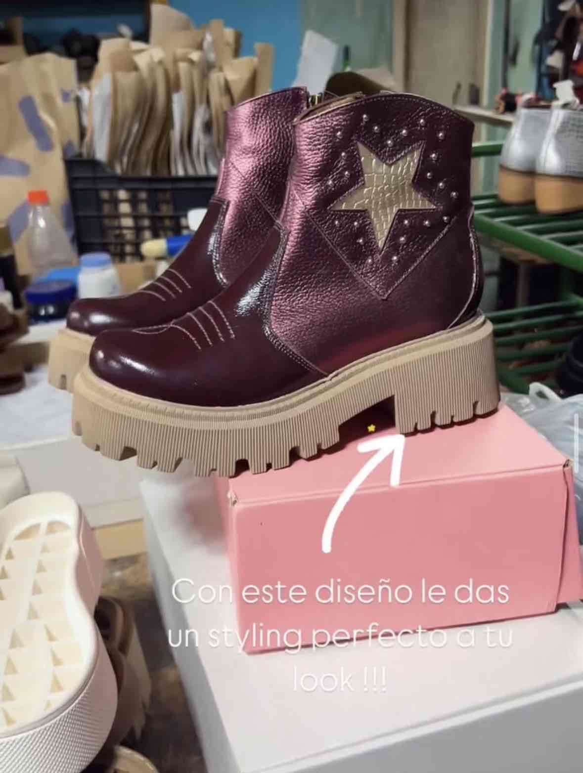 Botines de cuero, burdeos con plataforma y diseño de estrella, perfectos para un look estiloso. Nuevos , listos para usar.