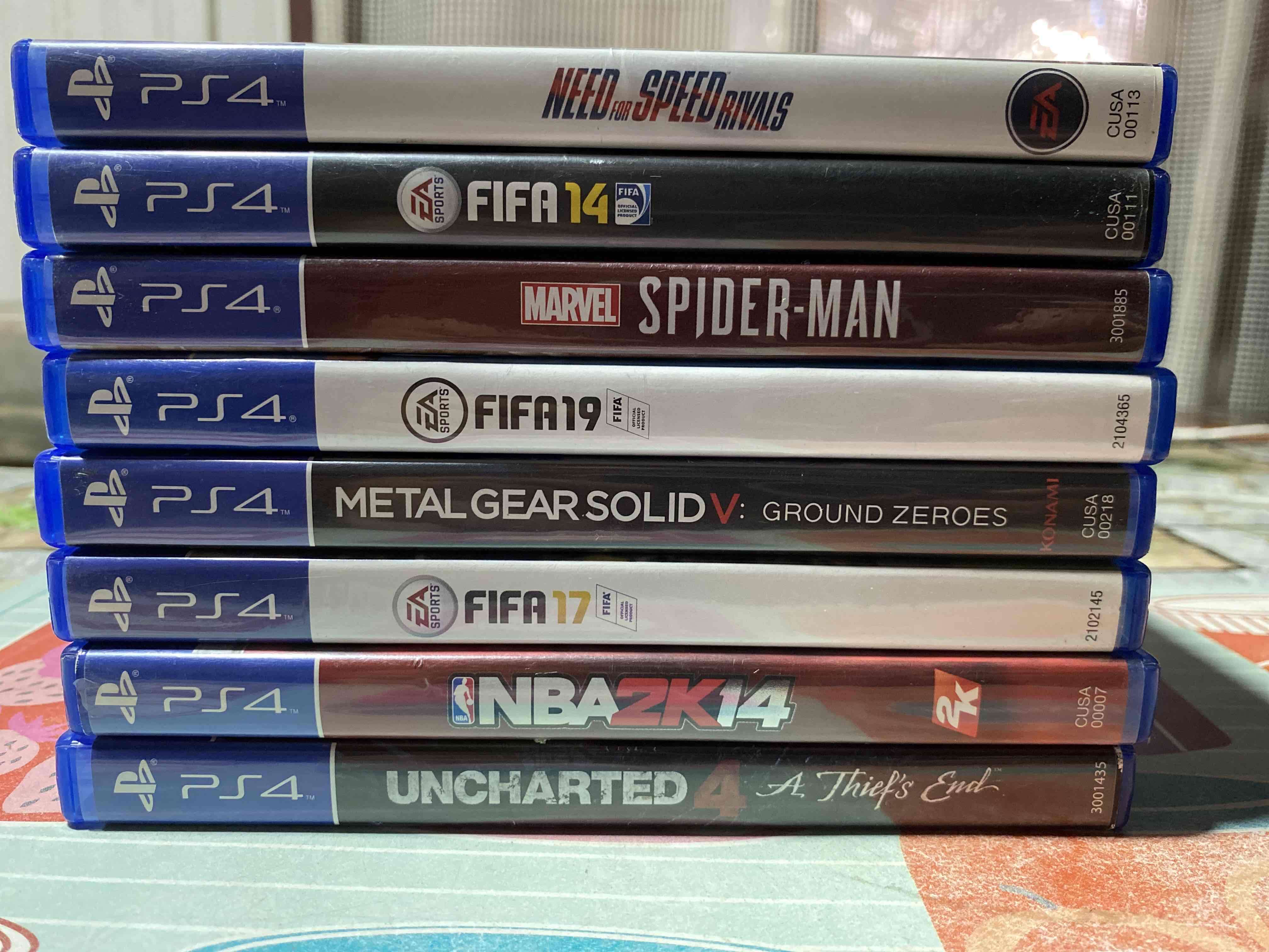 Colección de juegos para PS4 en buen estado, incluye títulos populares. Ideal para fanáticos de los videojuegos.