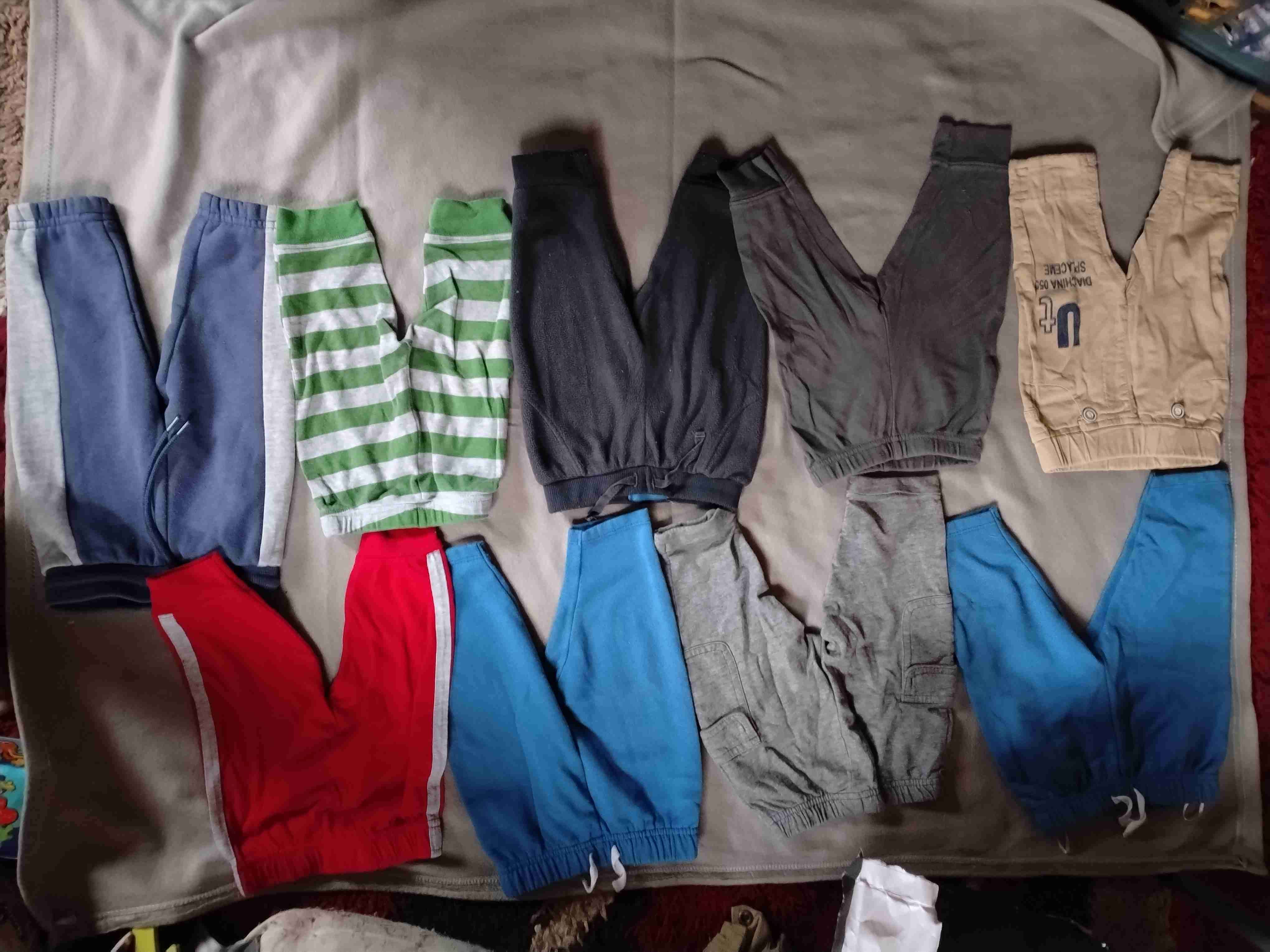 Varios pantalones y bodys de algodón para niños, ideales para el día a día. En buen estado, colores variados.