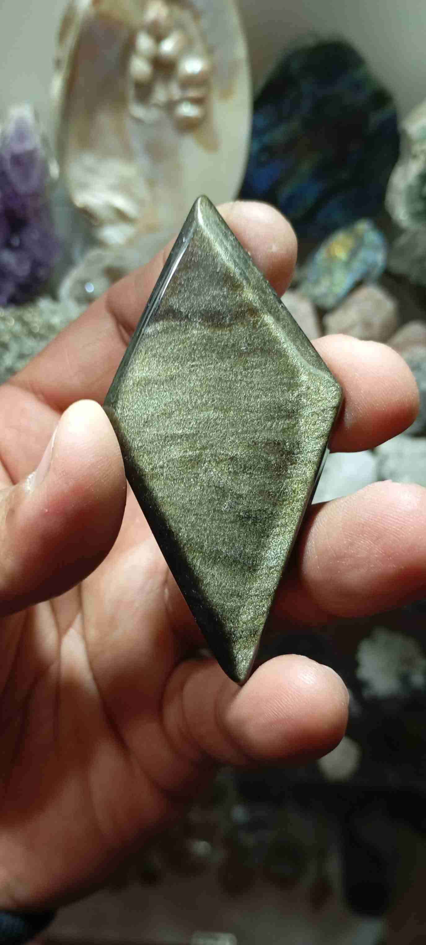 Bello lote de minerales en venta, consta de 5 piezas: -Rombo de obsidiana dorada. -Shunguita con pirita. -Espato de Islandia o calcita óptica. -Malaquita brotoidal con calcedonia. -Amatista bolivianita.