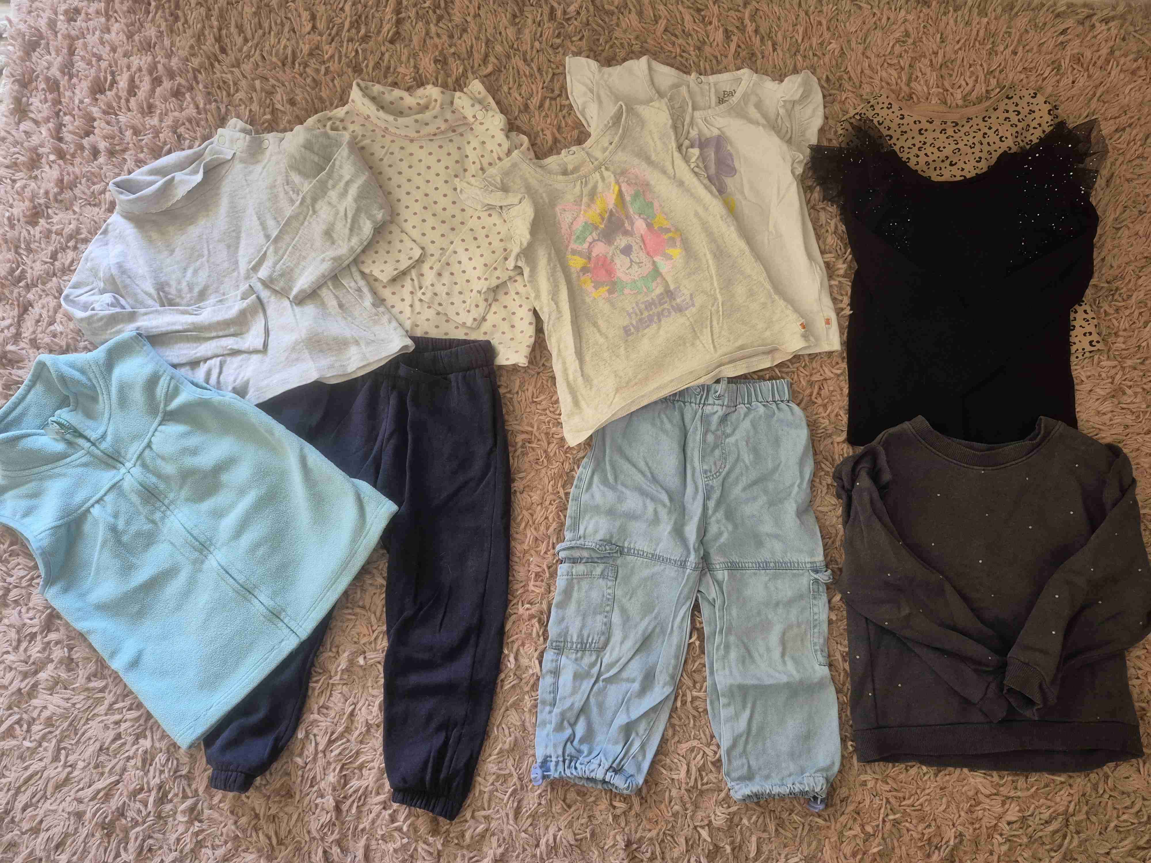 Conjunto de ropa infantil con poleras, pantalones y chaleco de polar. Estado general bueno, ideal para uso diario. Talla 3. Marcas H&M, Tribu, Baby Harvest.