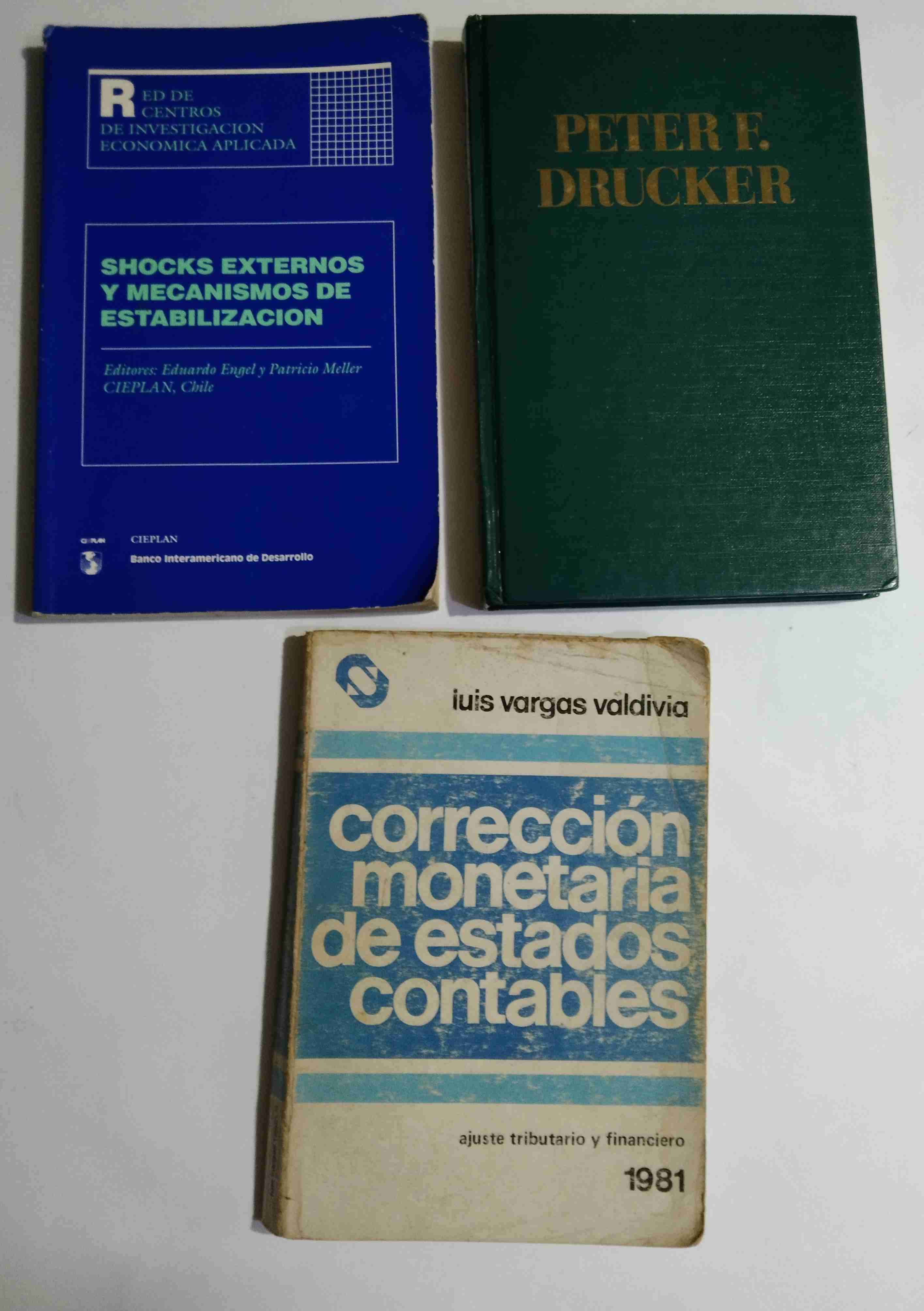 Lote de tres libros del área económica; shock externos y mecanismos de estabilización, la administración en una época de grandes cambios y corrección monetaria de estados contables. Valor por todos $ 6000