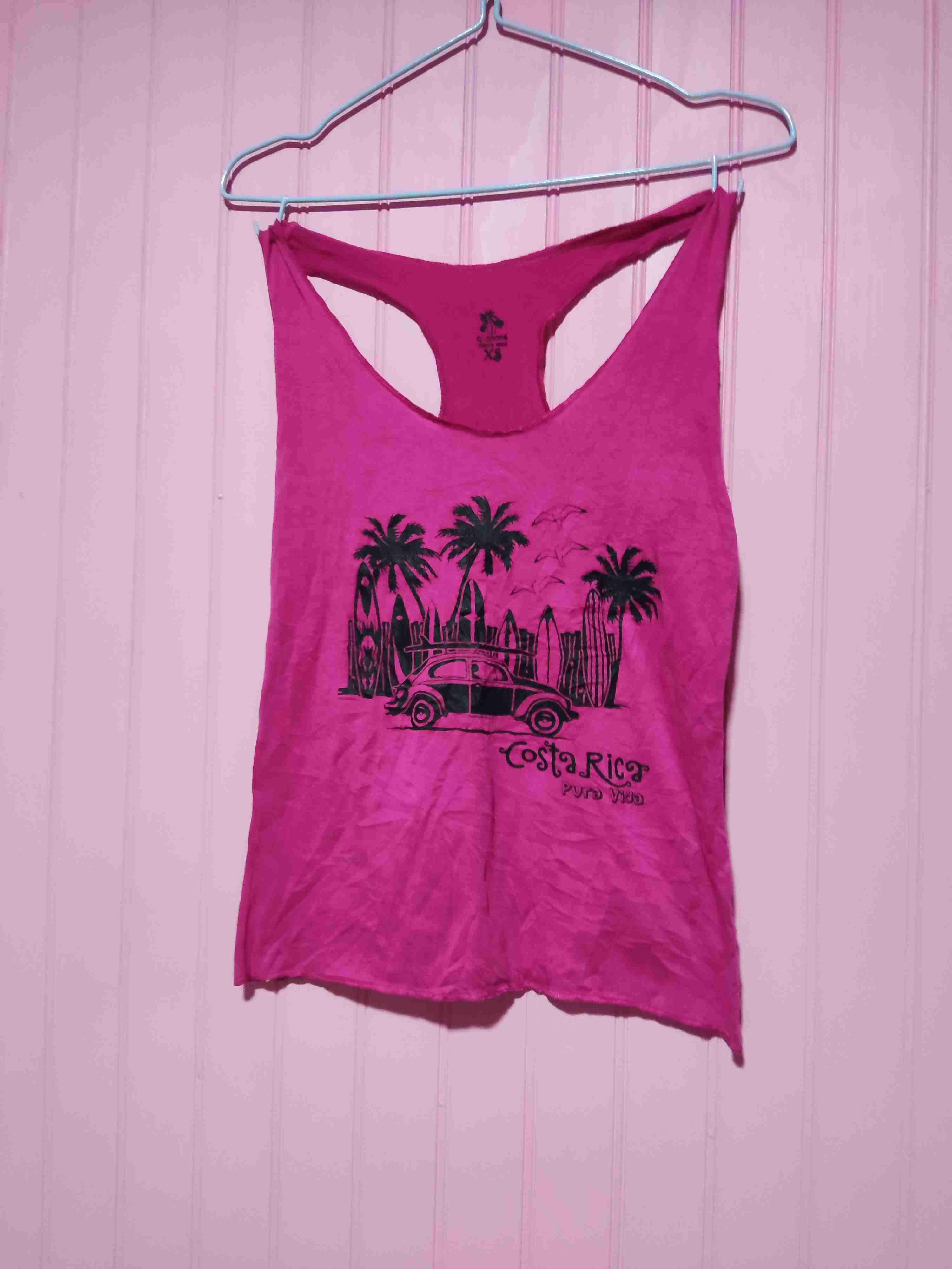 Polera sin mangas color rosa con estampado de Costa Rica. Ideal para días de verano. Estado general bueno.