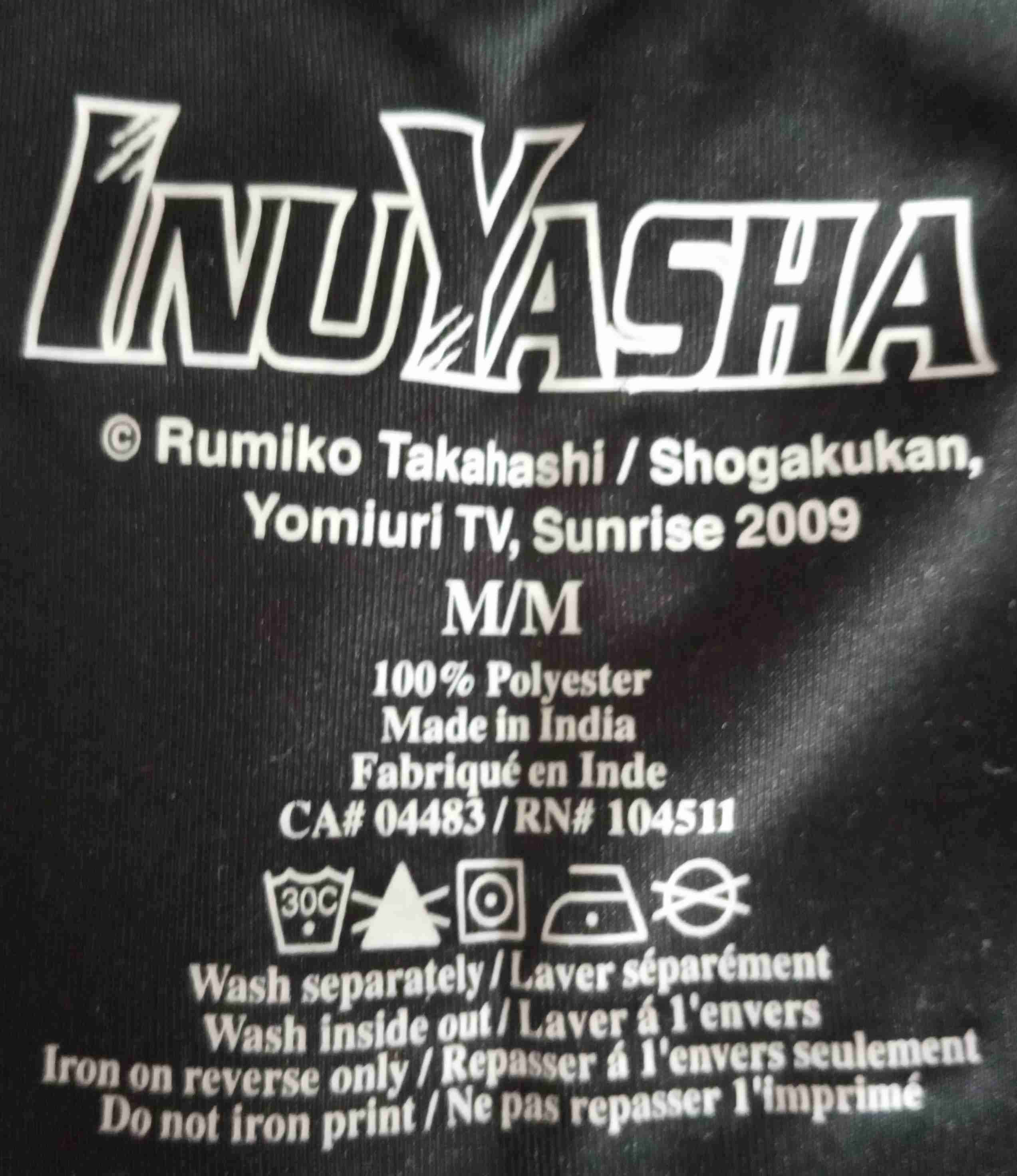 Polera negra con diseño de Inuyasha, talla M. Ideal para fanáticos del anime. Hecha de poliéster, en buen estado.
