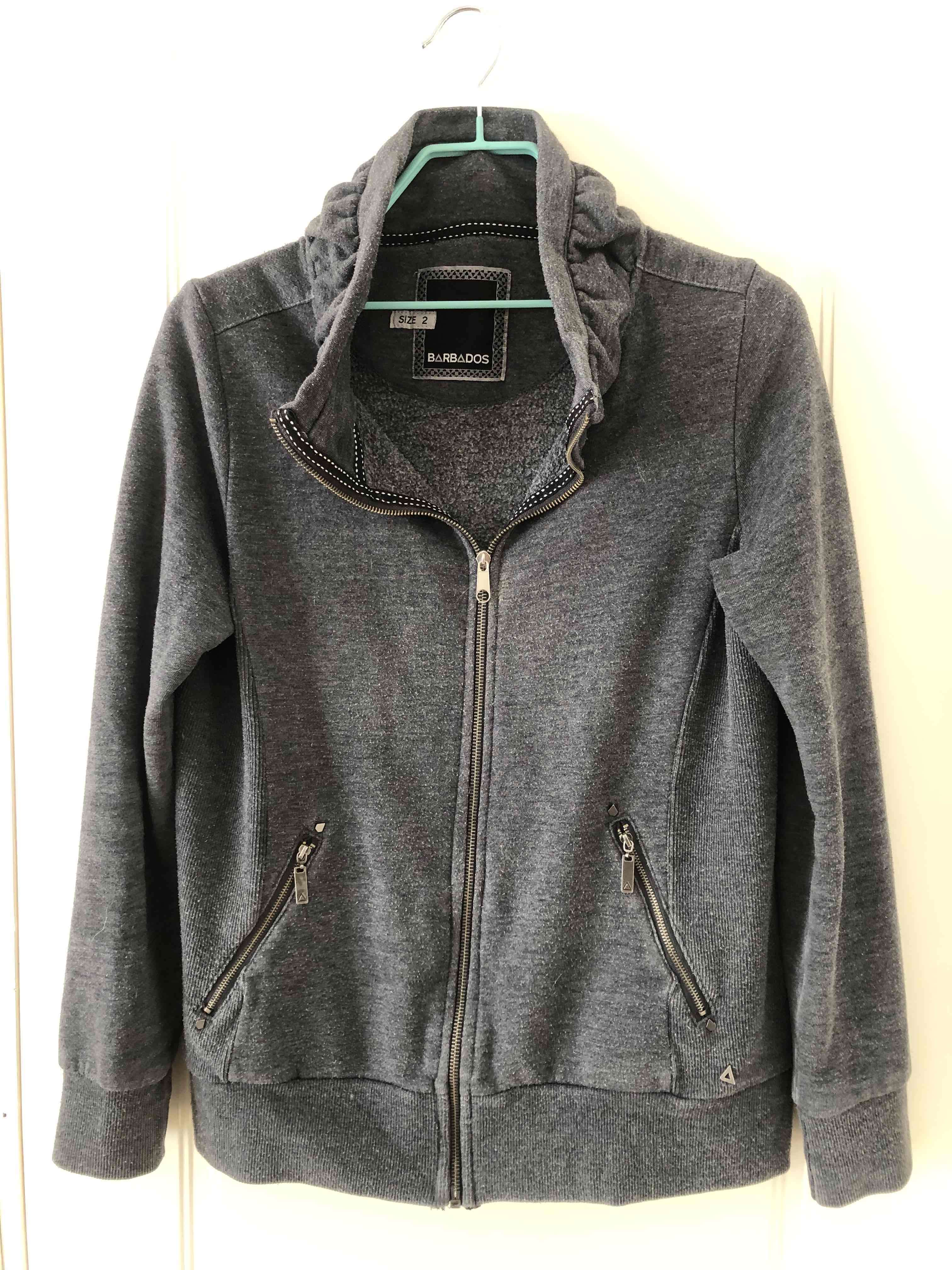 Polerón gris oscuro con cierre frontal, ideal para días frescos. En buen estado, con poco uso.