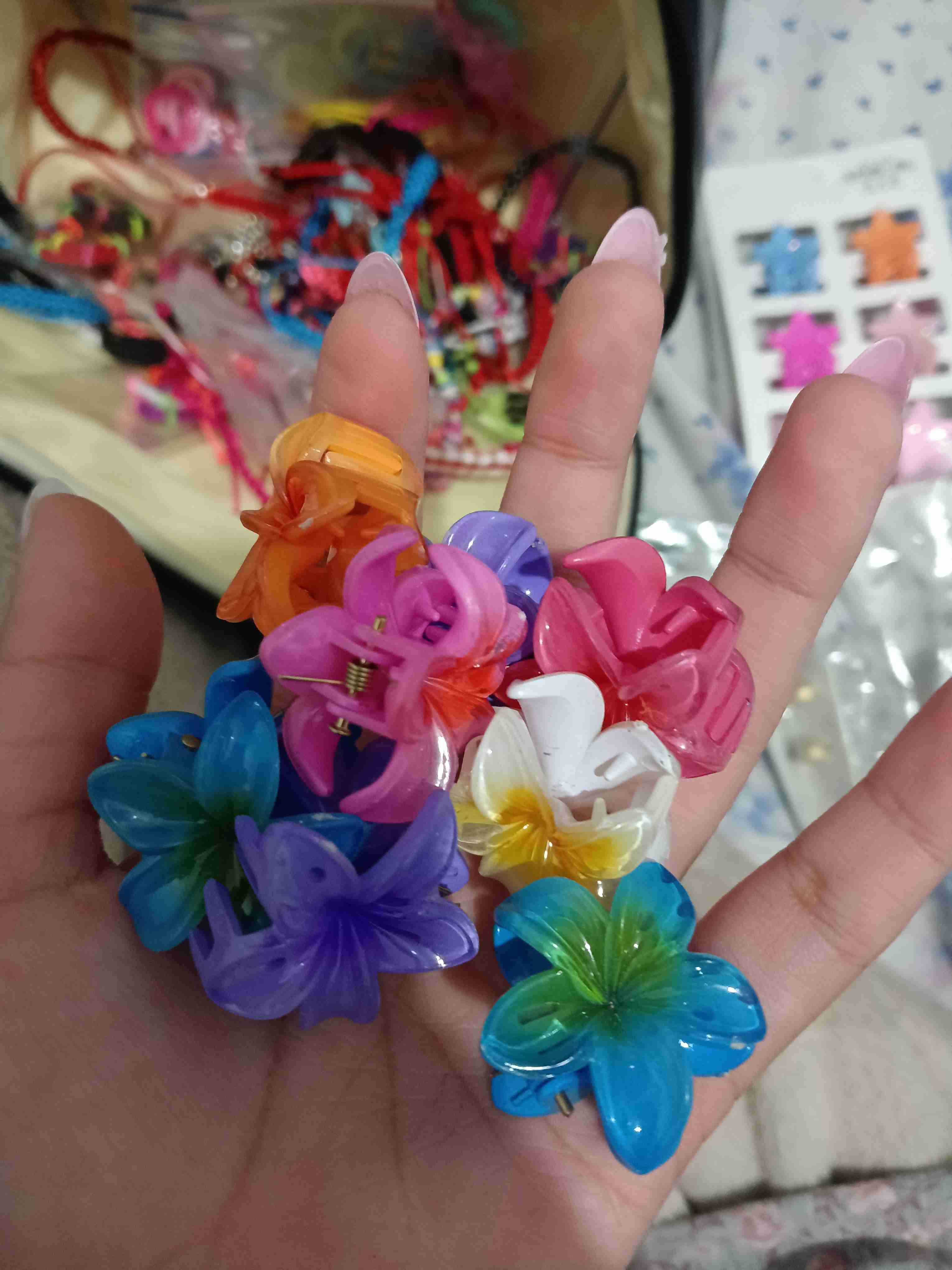Coloridas pinzas de pelo en forma de flor. Perfectas para un look alegre y veraniego.