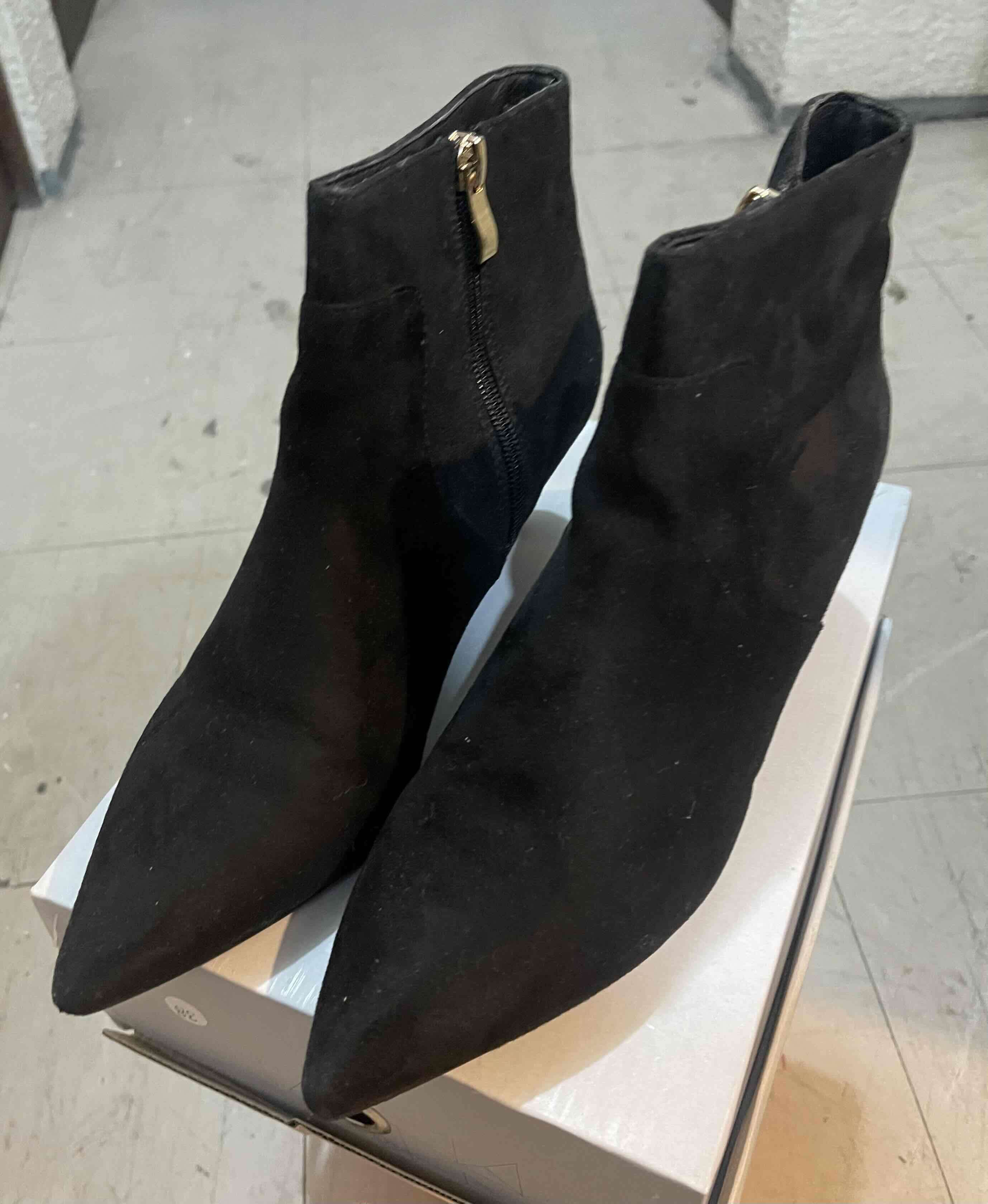 Botines elegantes de gamuza negra, marca MARITTIMO perfectos para el otoño. En buen estado, con cierre latera y taco de 5 centímetros.