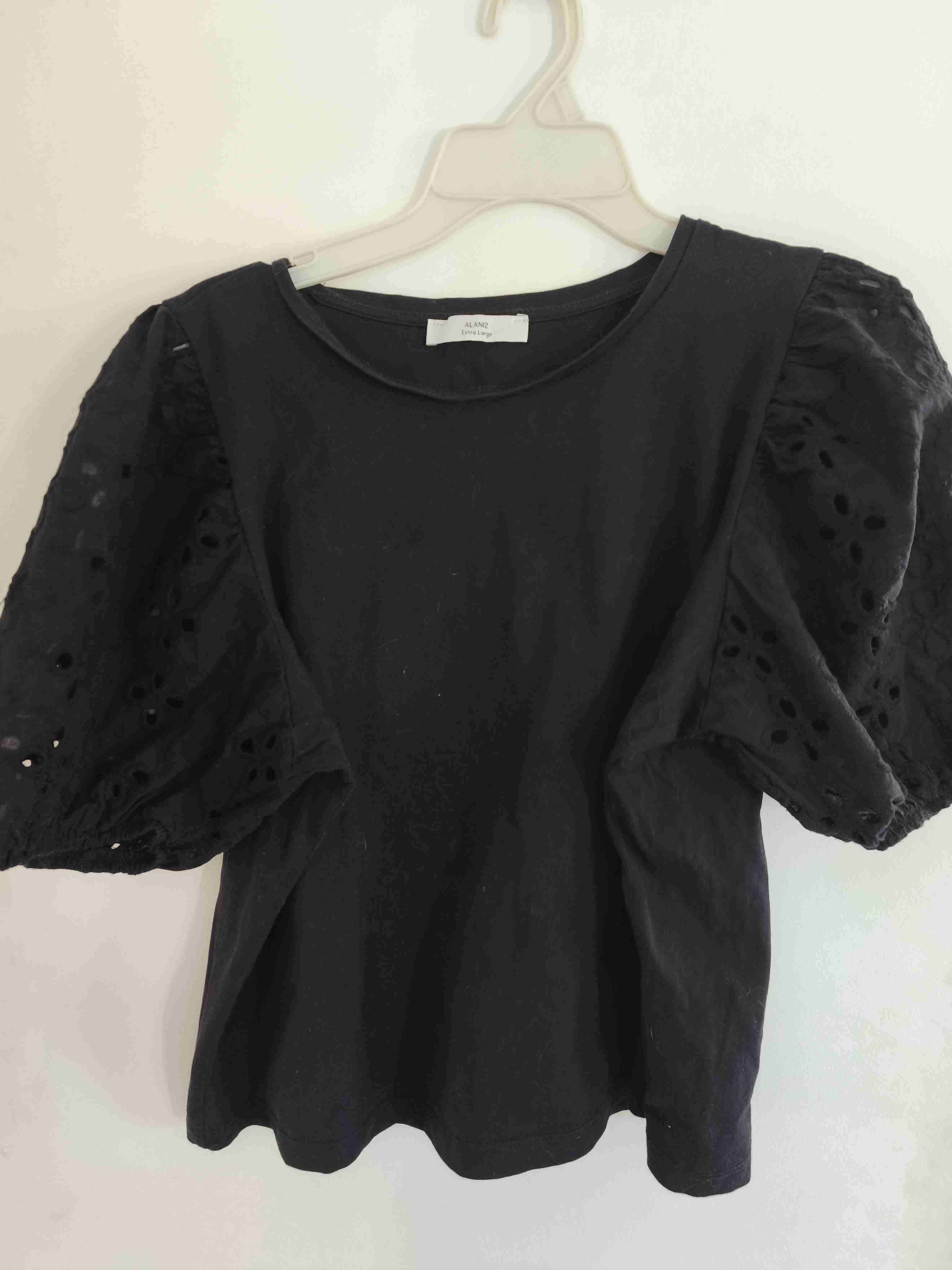 Polera negra con mangas abullonadas