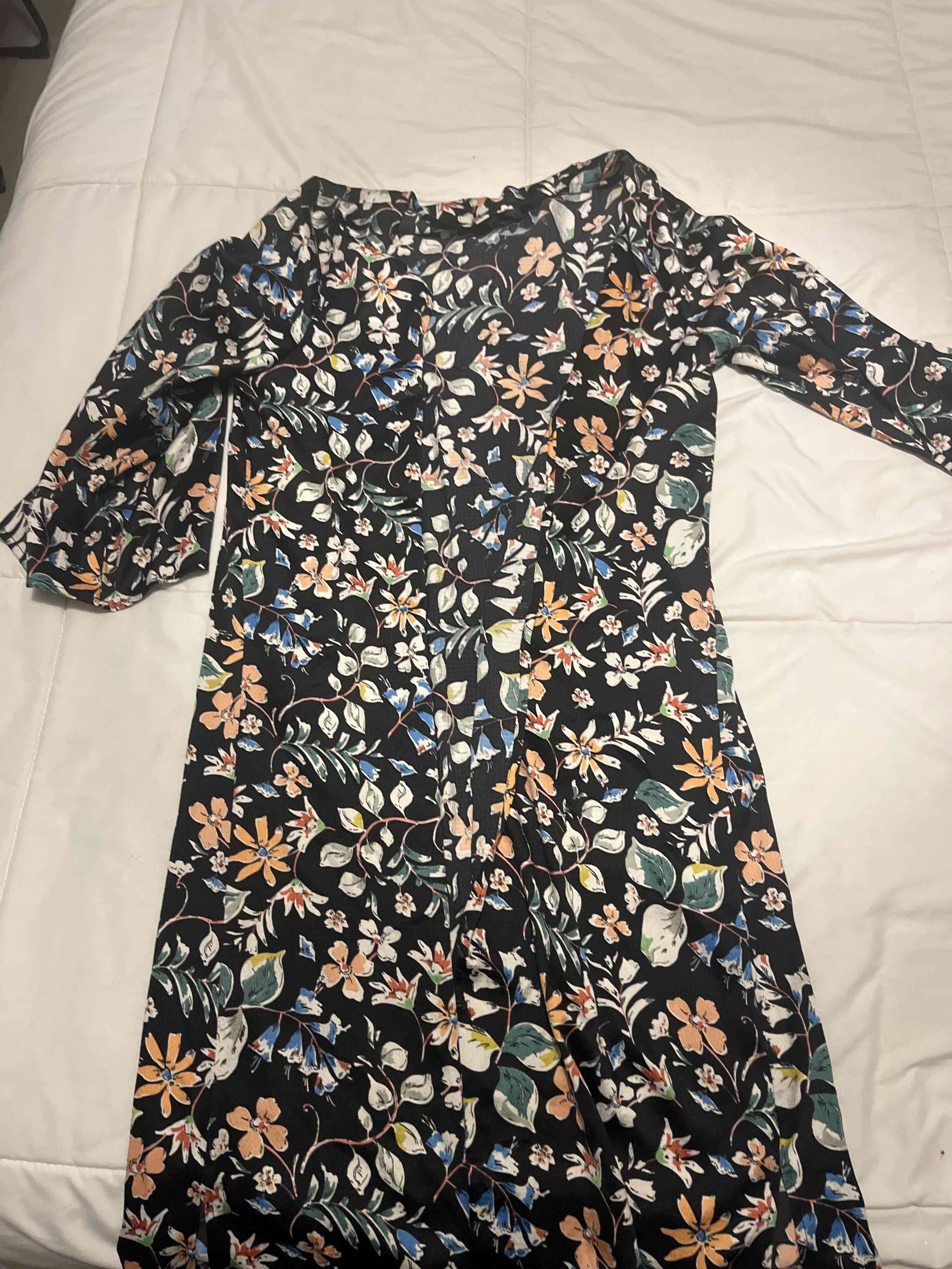 Tapado elegante con diseño floral en tonos vivos sobre fondo negro. Perfecto para ocasiones semi-formales.