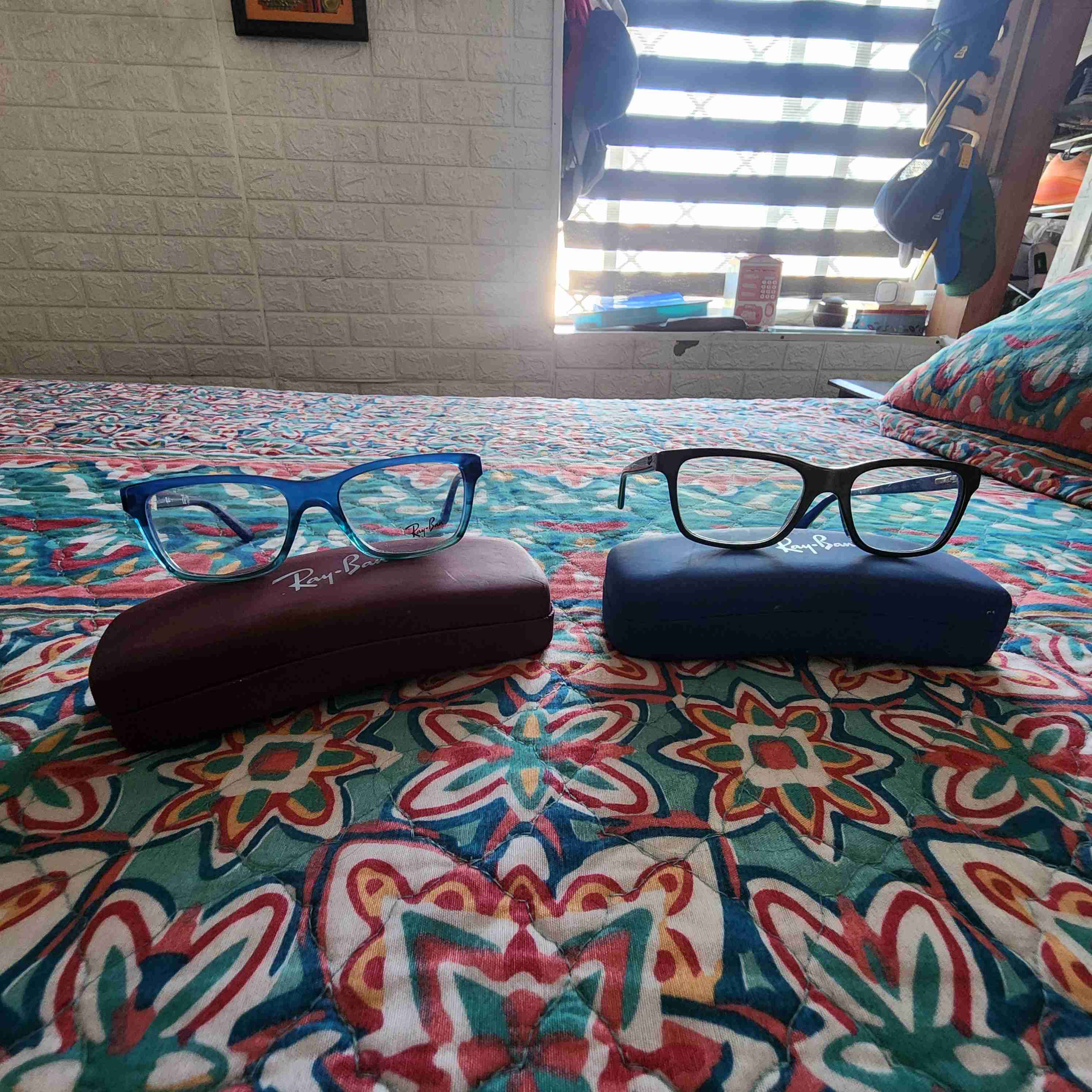 3 pares de anteojos Ray-Ban, uno en color azul y 2 con azul y detalles verdes. Incluyen estuche original. En buen estado general, perfectos para el uso diario. 1 nuevo 2 con cristales con aumento 3 por 50.000