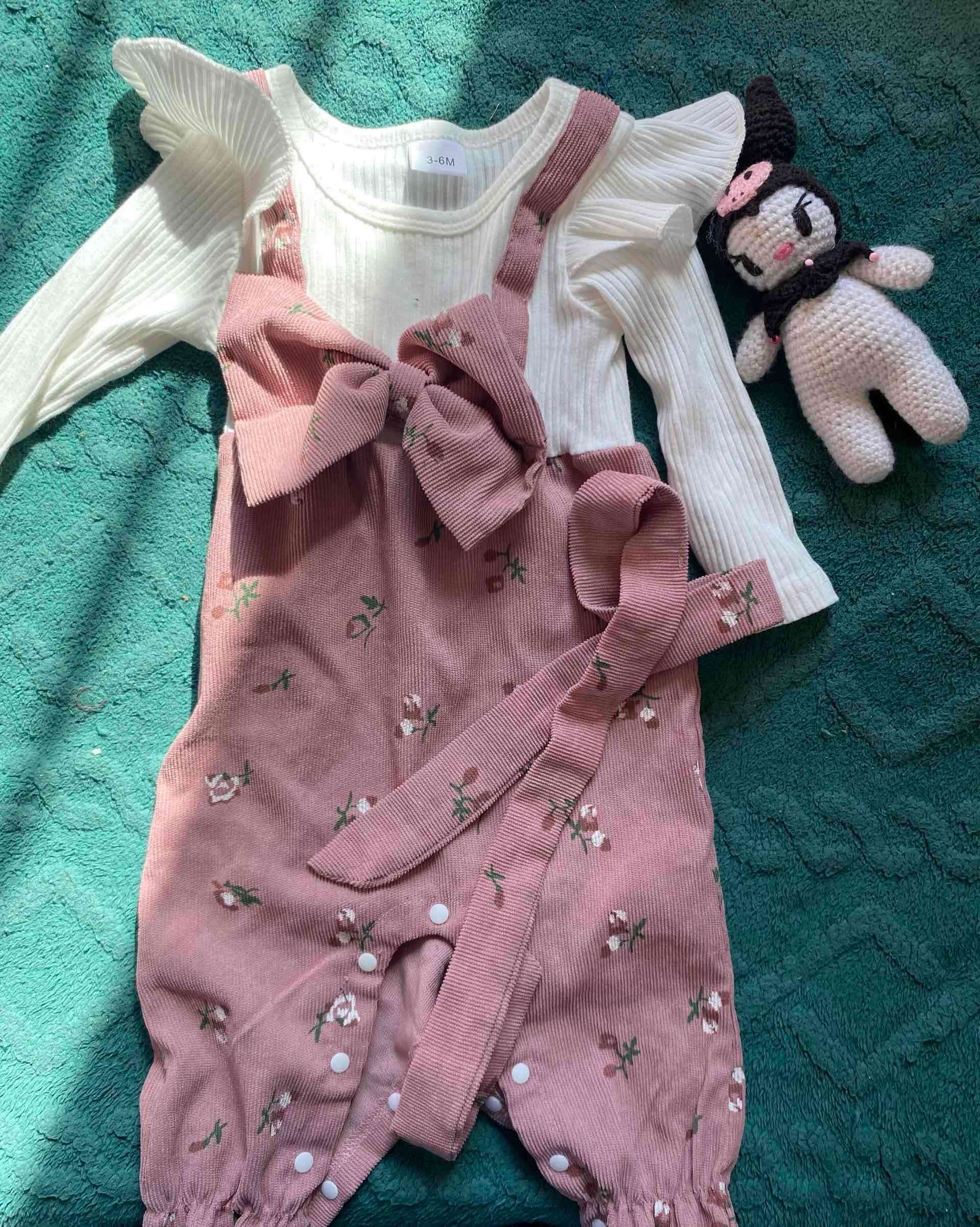 Lindo enterito para bebé de 3 a 6 meses, perfecto para ocasiones especiales. Diseño floral con lazo decorativo.