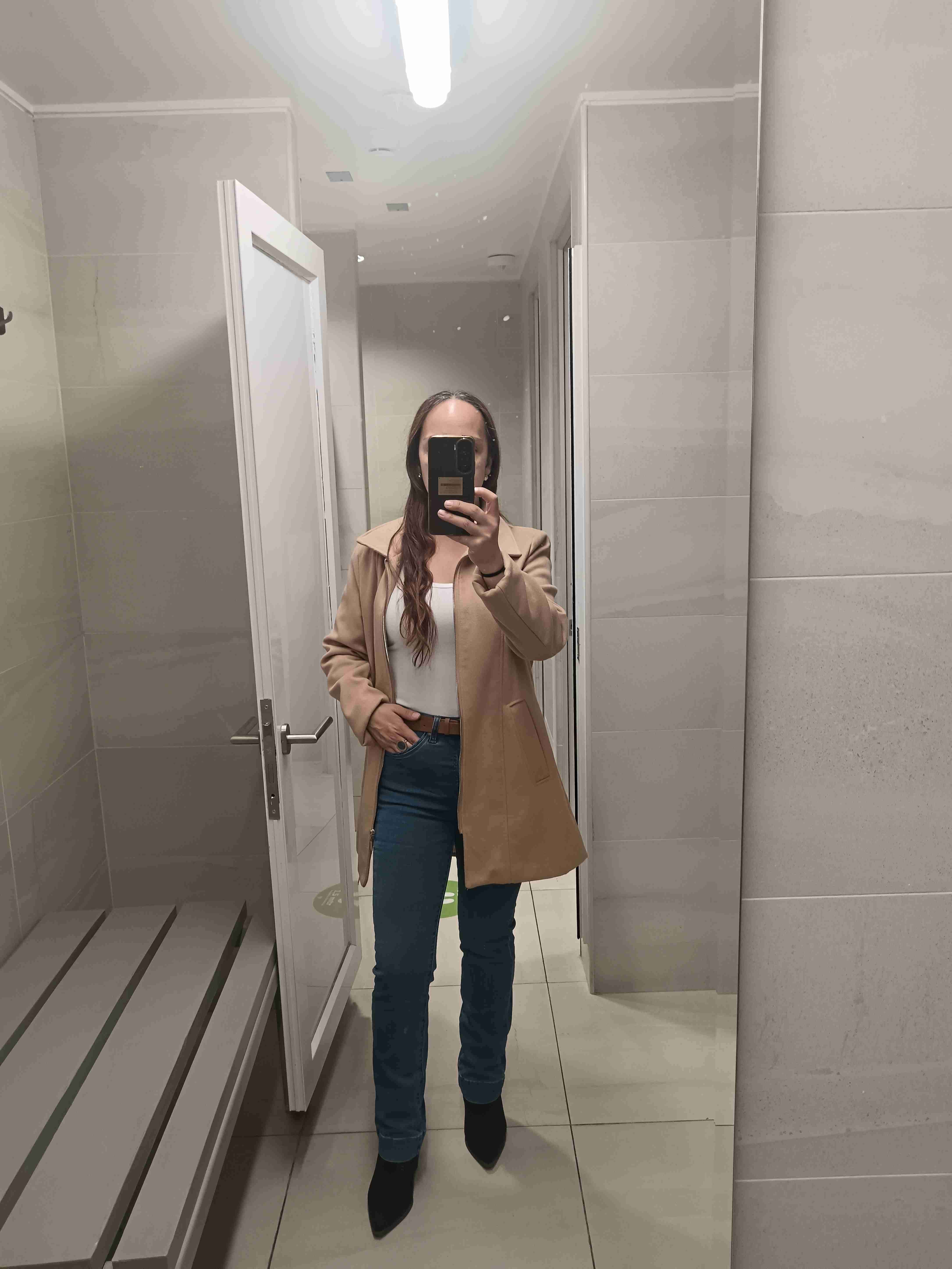 Elegante abrigo de mujer en color camel, ideal para el otoño. En buen estado, levemente usado.