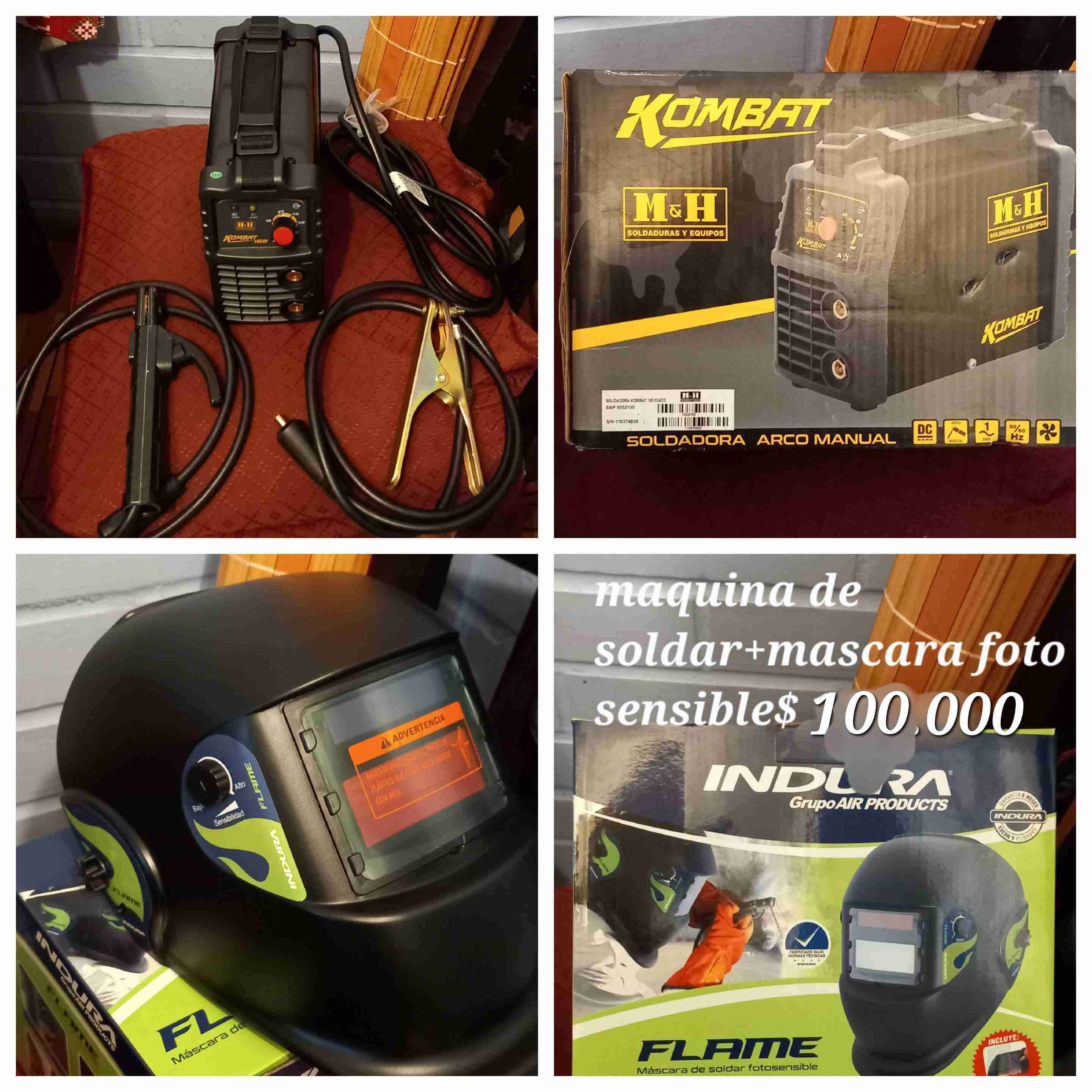Soldadora de arco manual kombat my h 160 amperes y máscara fotosensible flame indura, ideal para trabajos de soldadura