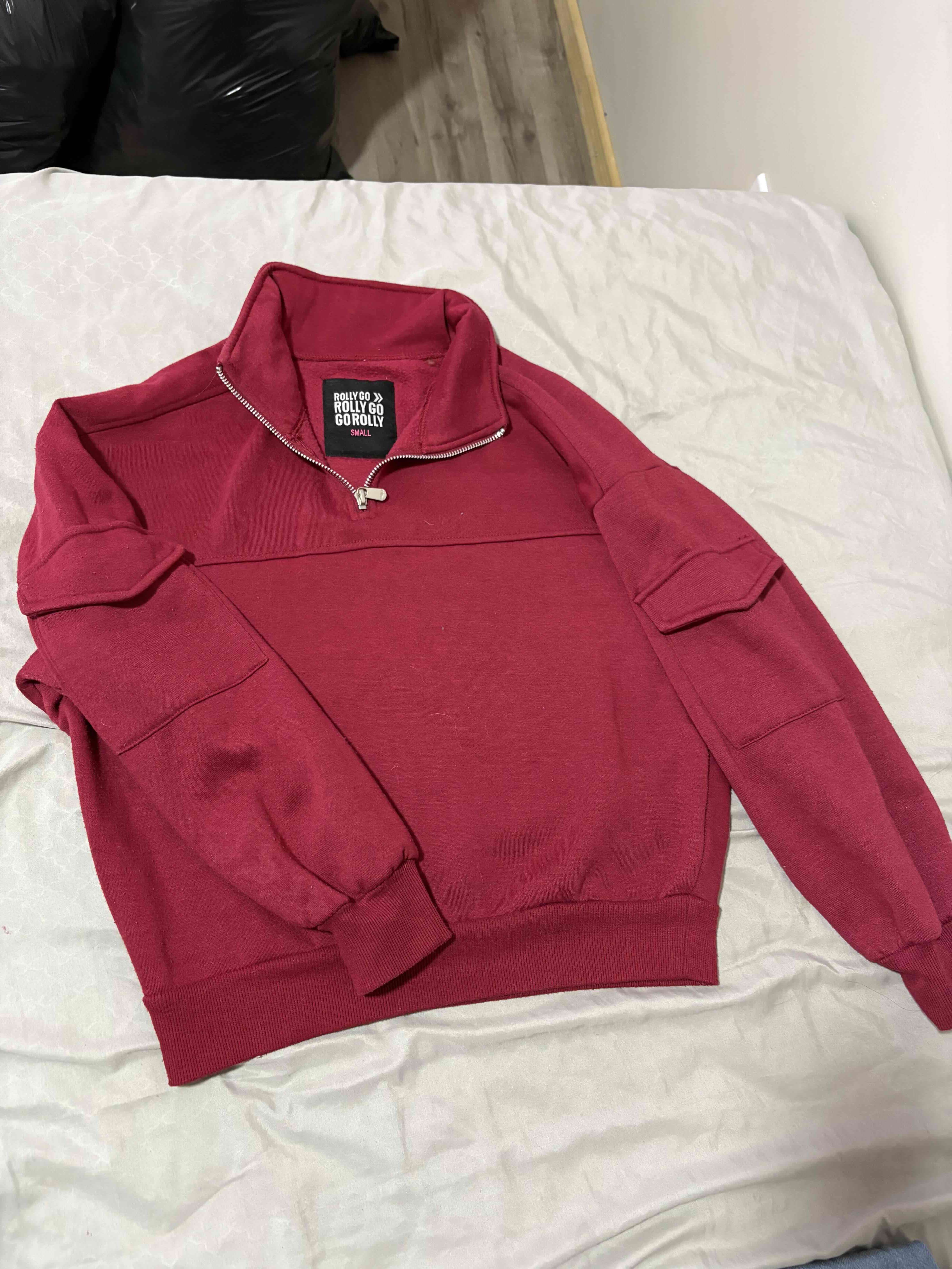 Polerón rojo estilo sport con cierre hasta el pecho, ideal para días frescos. Está en buen estado general con leves signos de uso.