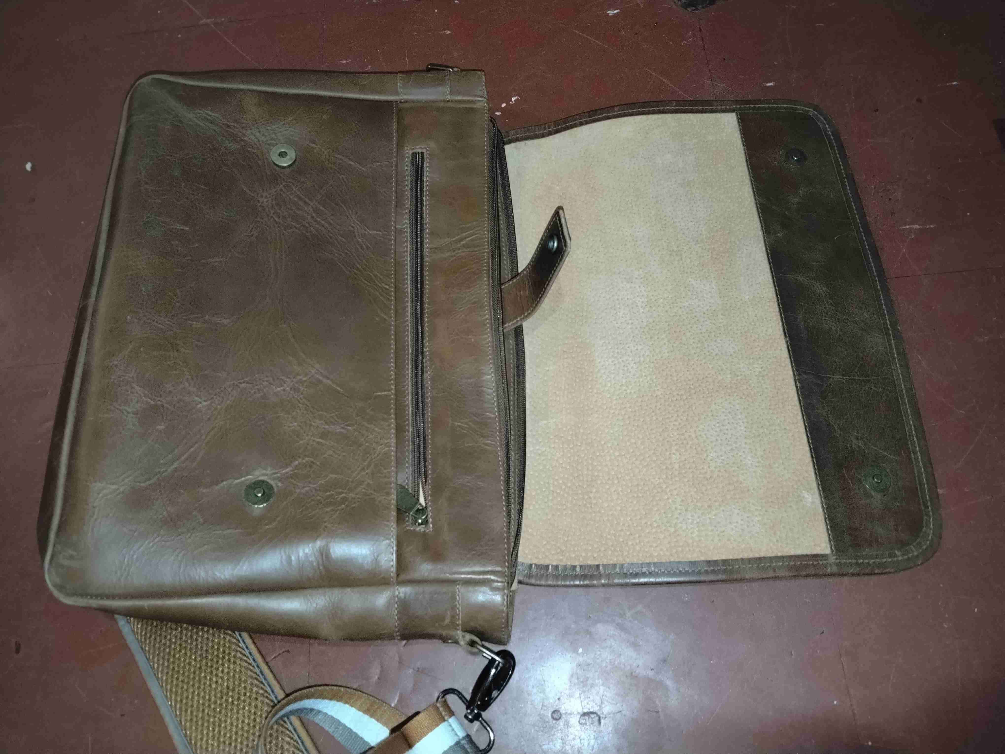 Bolso de cuero marrón en buen estado, perfecto para uso diario. Ideal para llevar tus cosas de manera segura y con estilo.