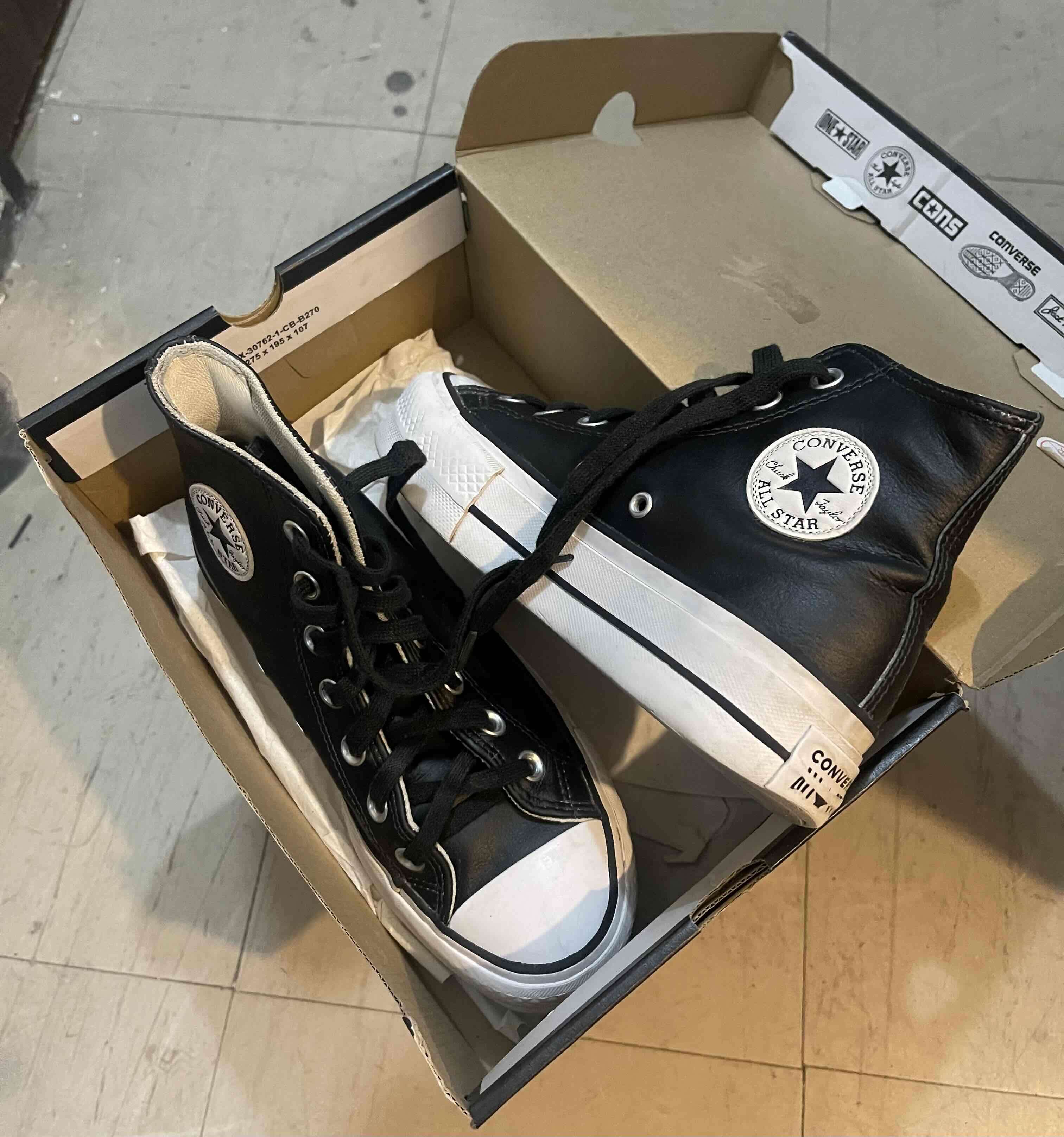 Zapatillas Converse All Star negras de caña alta de cuero, en buen estado. Perfectas para un look casual y urbano.