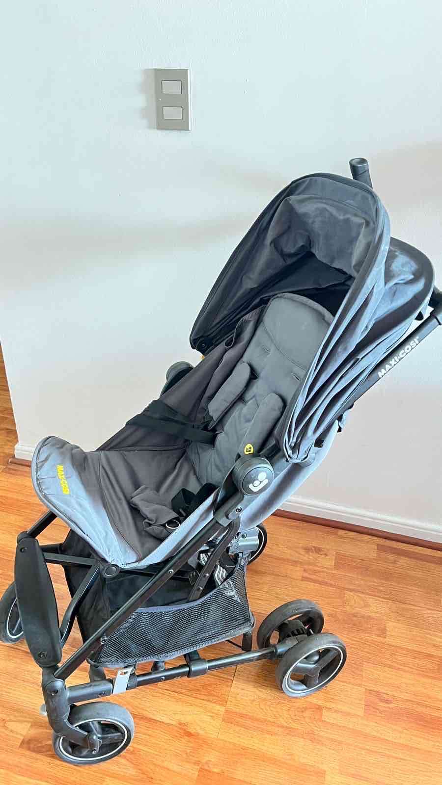Coche de paseo gris en buen estado. Ideal para paseos cómodos con tu bebé. Cuenta con toldo ajustable y canasto inferior.