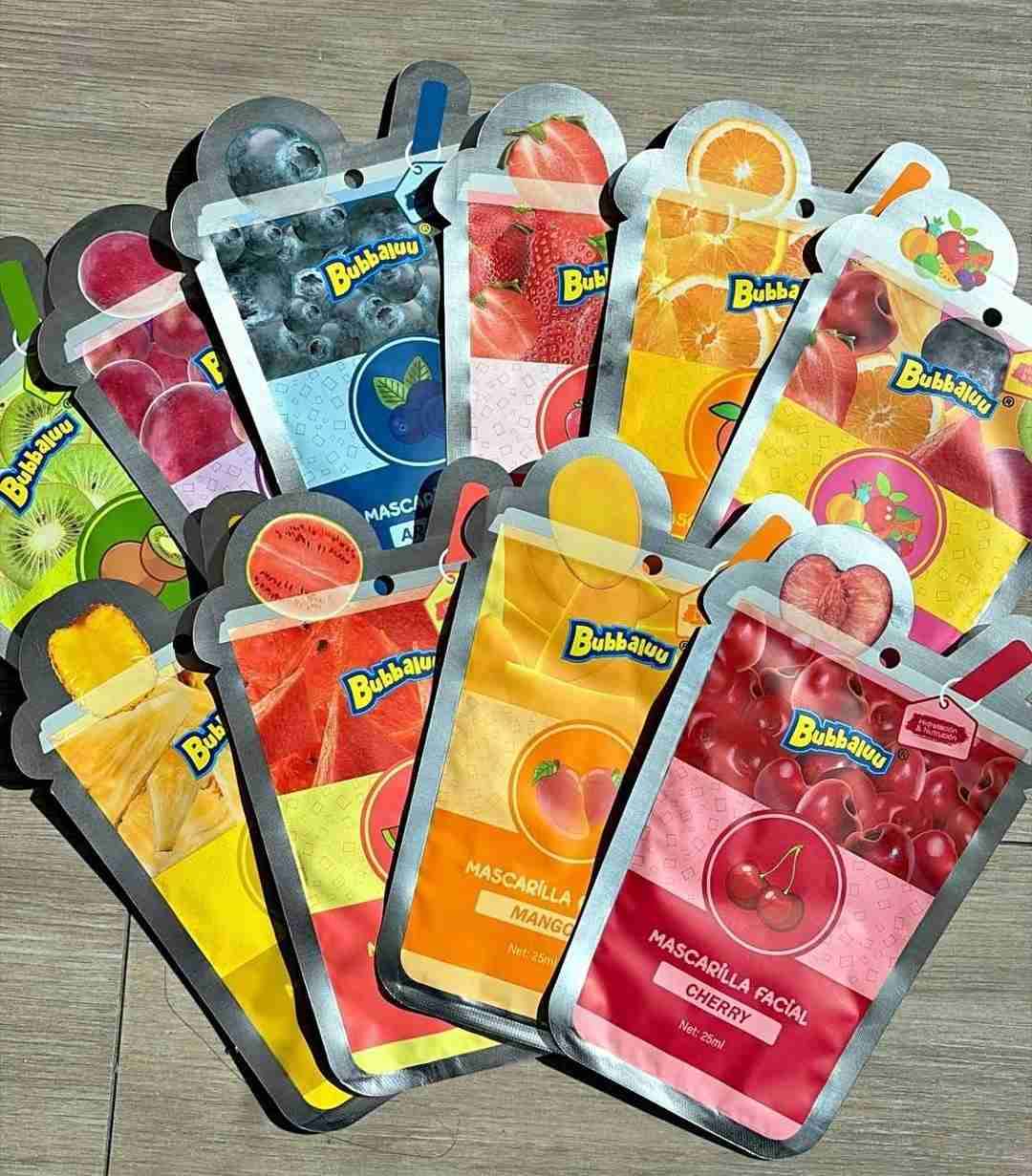 Variedad de mascarillas faciales con aromas frutales. Ideales para relajarse y cuidar la piel en casa.