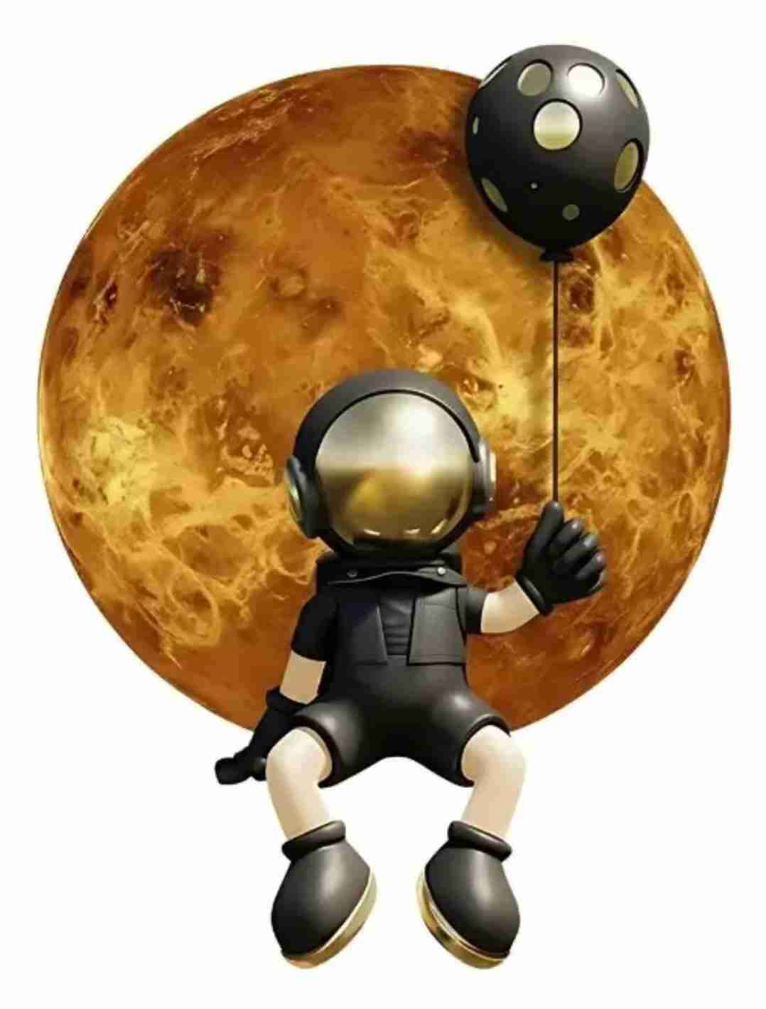 Figura de astronauta sentado con un globo sobre un fondo de planeta. Perfecto para decorar tu espacio con un toque espacial.