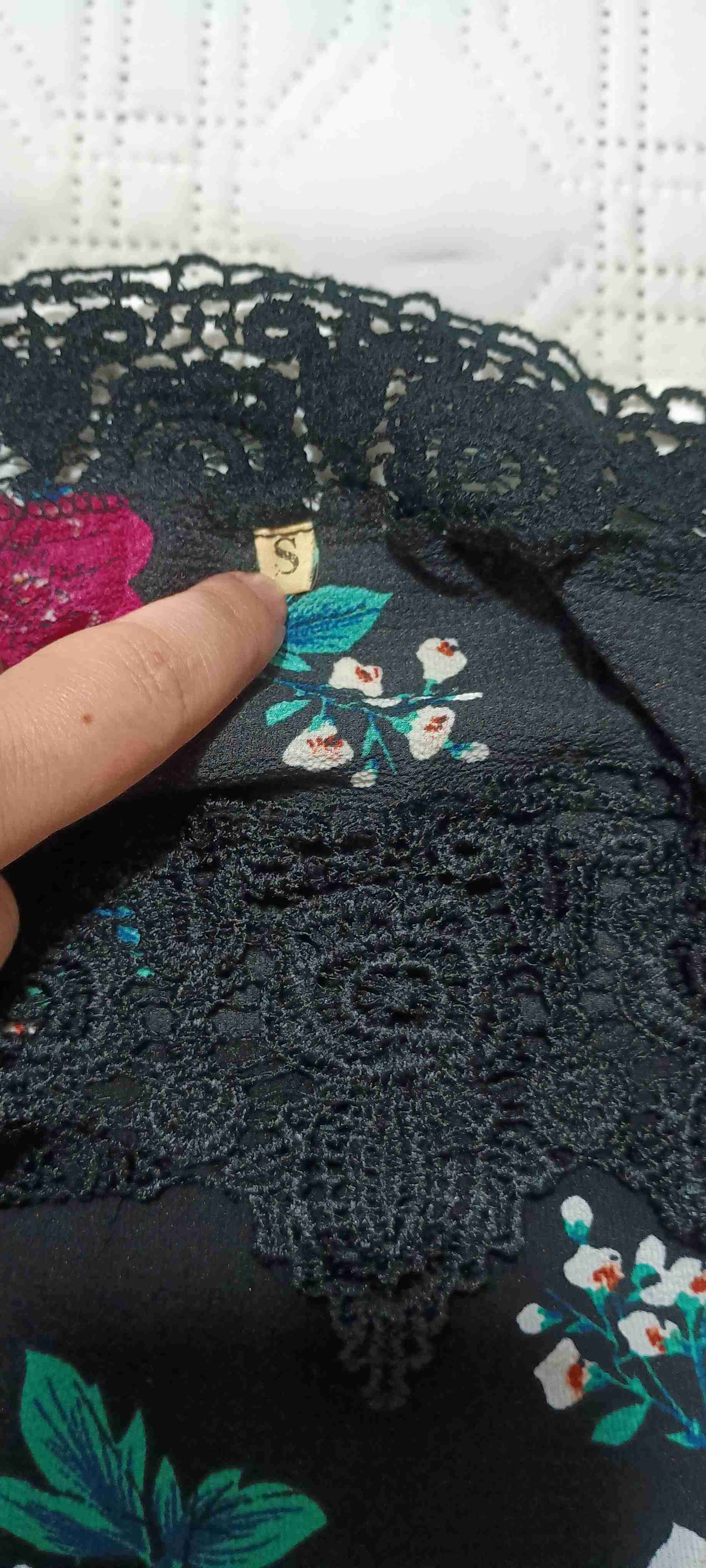 Blusa floreada manga tres cuartos con encaje en mangas y cuello talla s, usada
