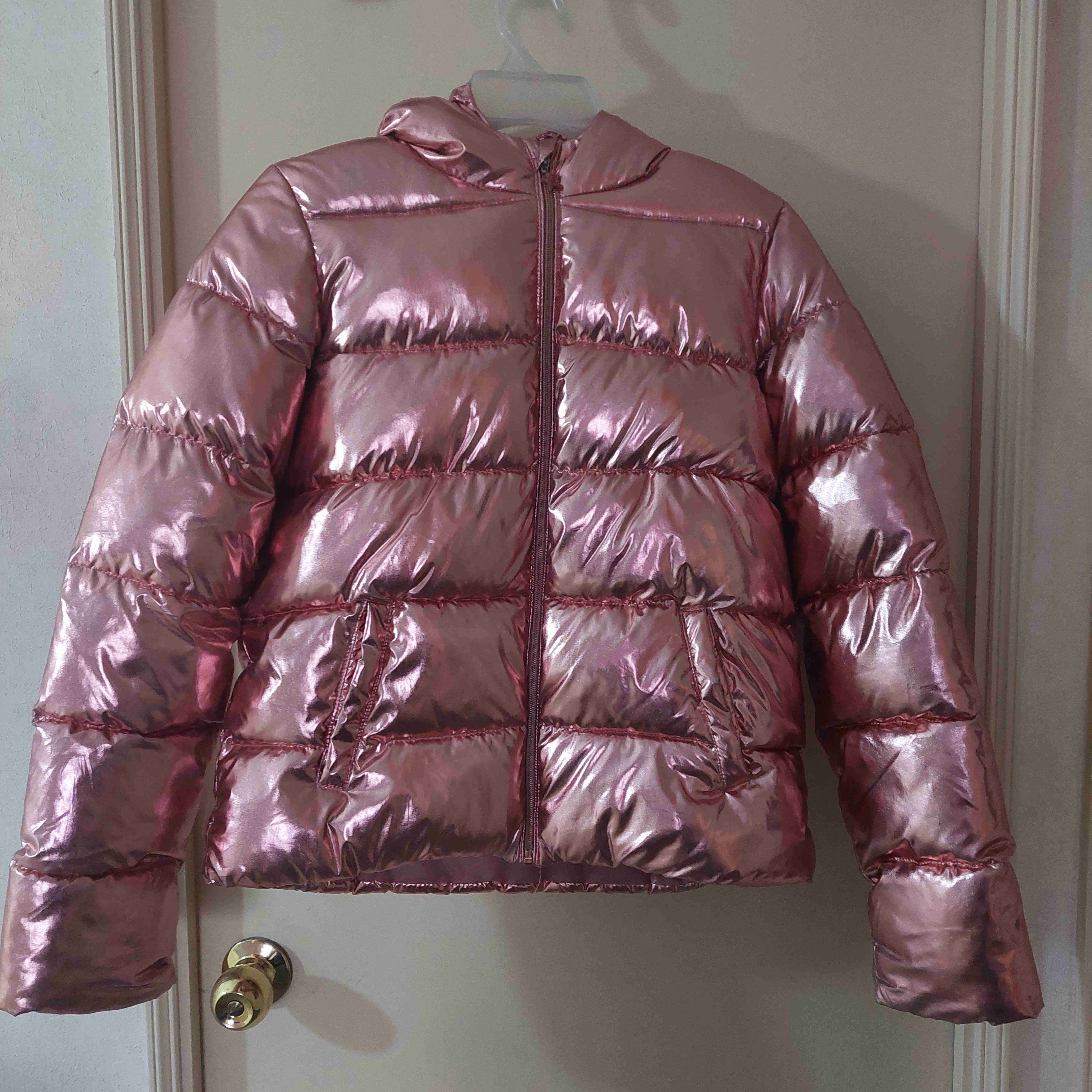 Chaqueta abrigada con acabado metálico, ideal para el invierno. Buen estado general, es talla 16