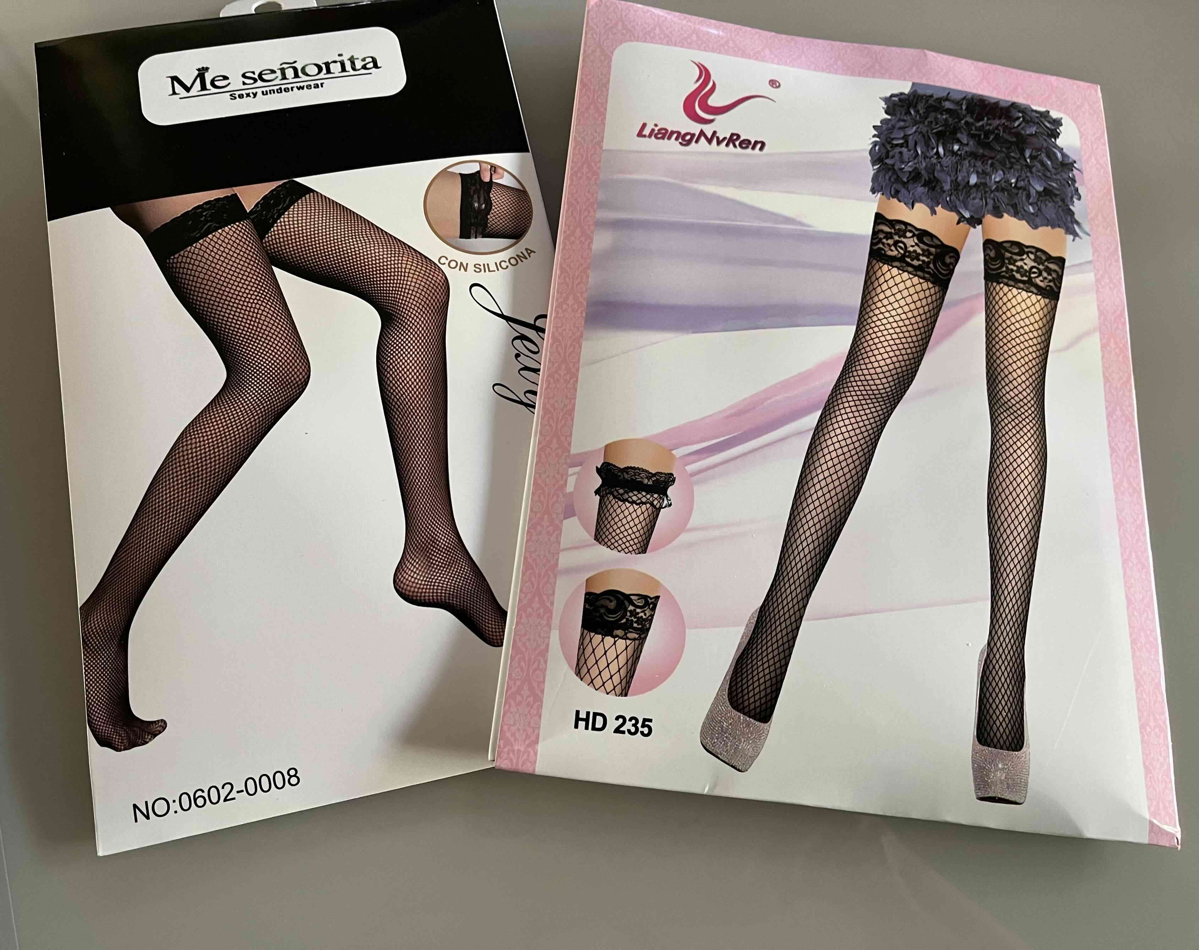 Medias sensuales de rejilla con encaje en la parte superior. Ideales para ocasiones especiales.