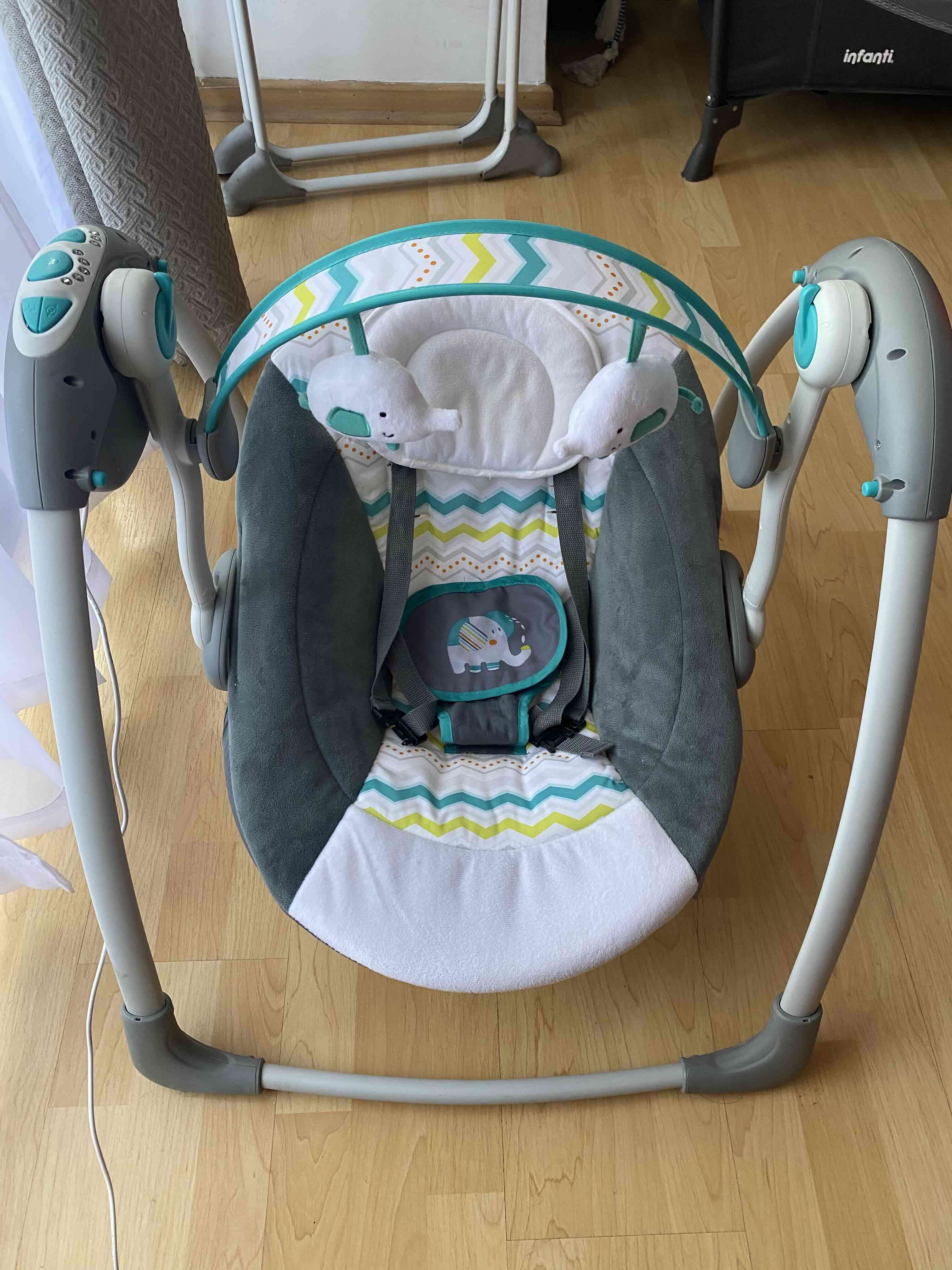 Mesedora eléctrico con estampado colorido, perfecto para calmar y entretener a tu bebé. En buen estado general.