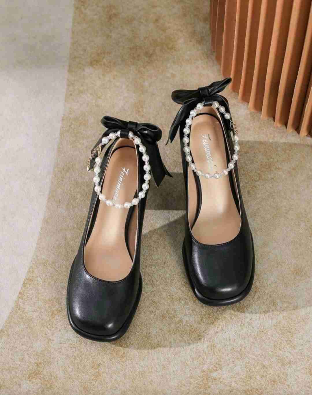 Zapatos negros con perlas