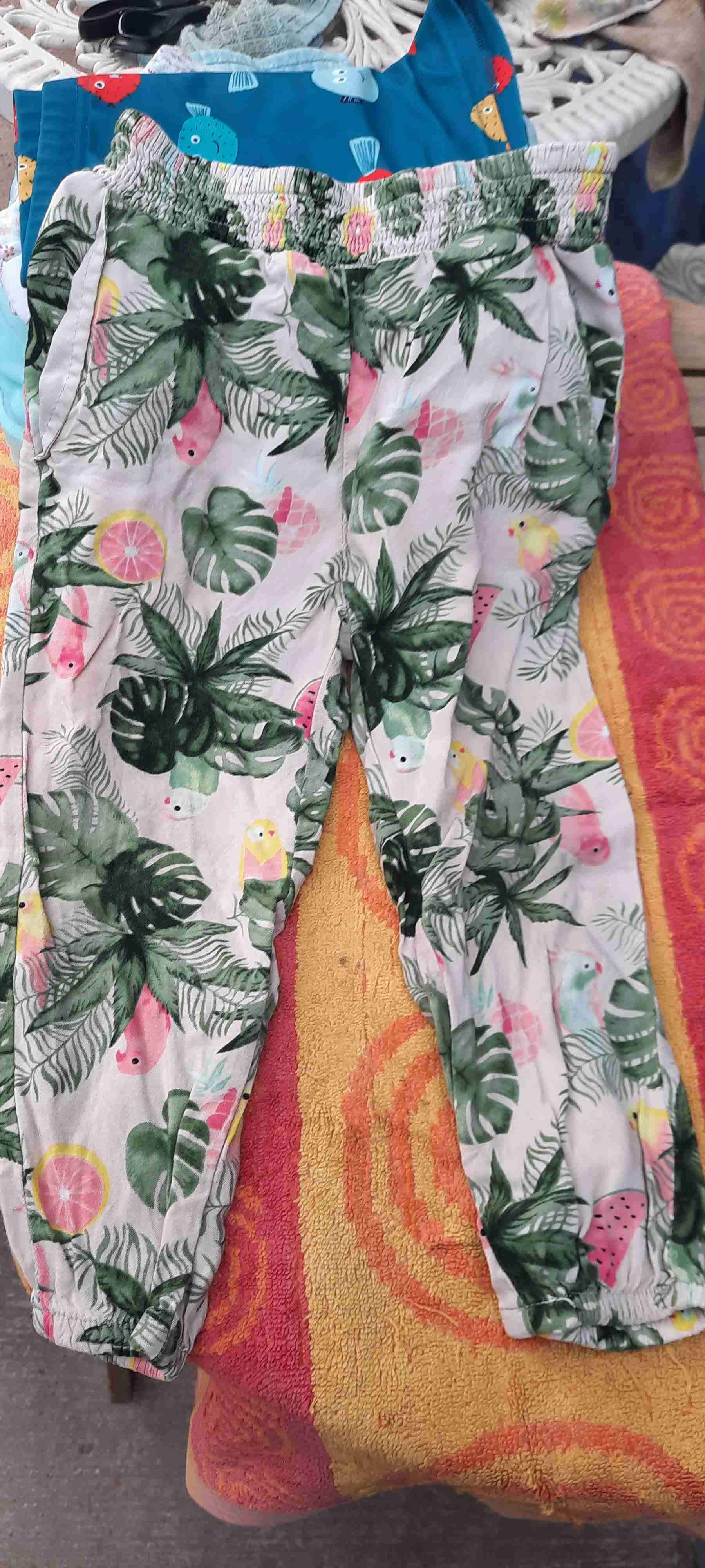 Pantalones casuales con diseño tropical, colores vivos y cómodo ajuste elástico. Ideales para un look veraniego relajado
