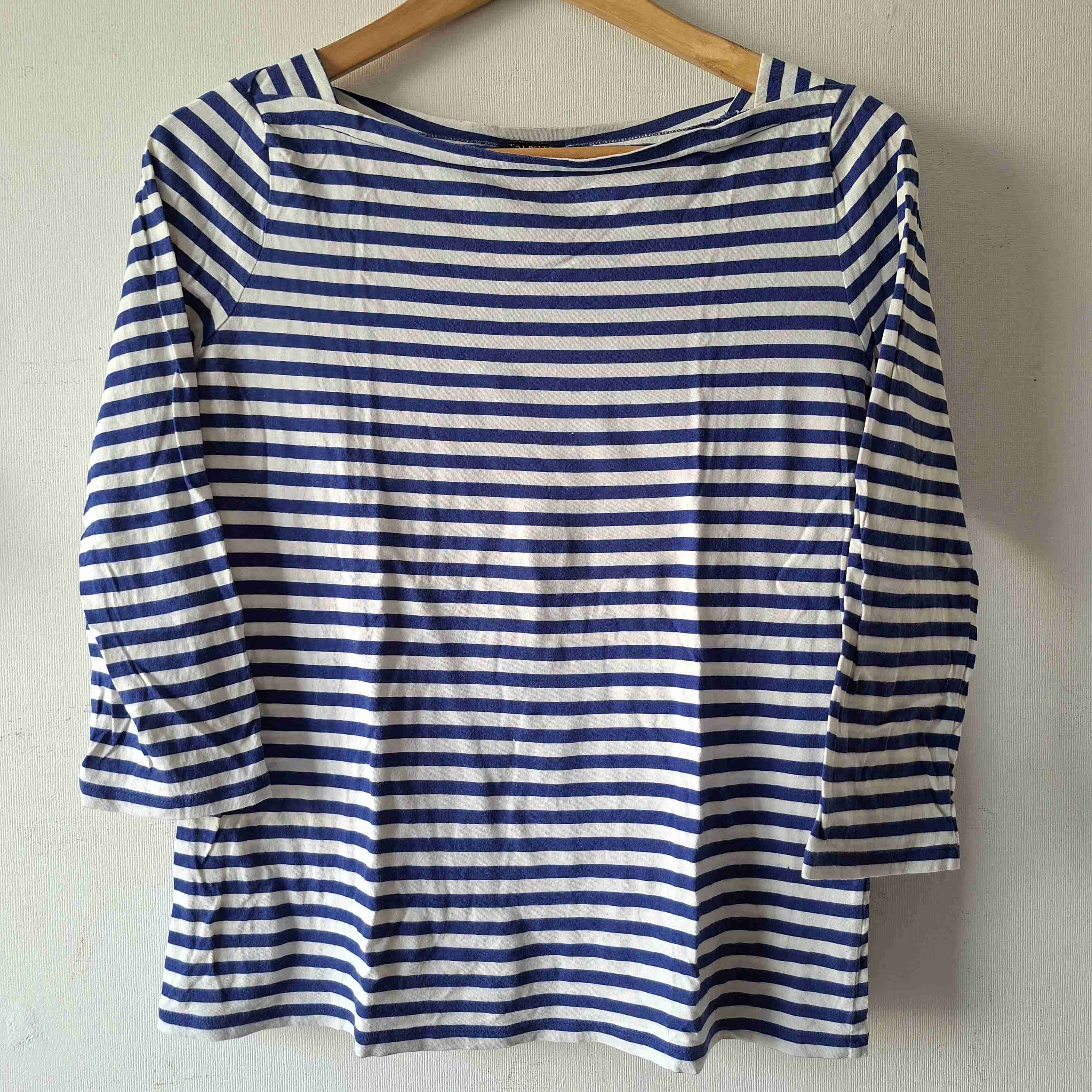 Cómoda polera de rayas azules y blancas de algodón, perfecta para un look casual. En buen estado.
