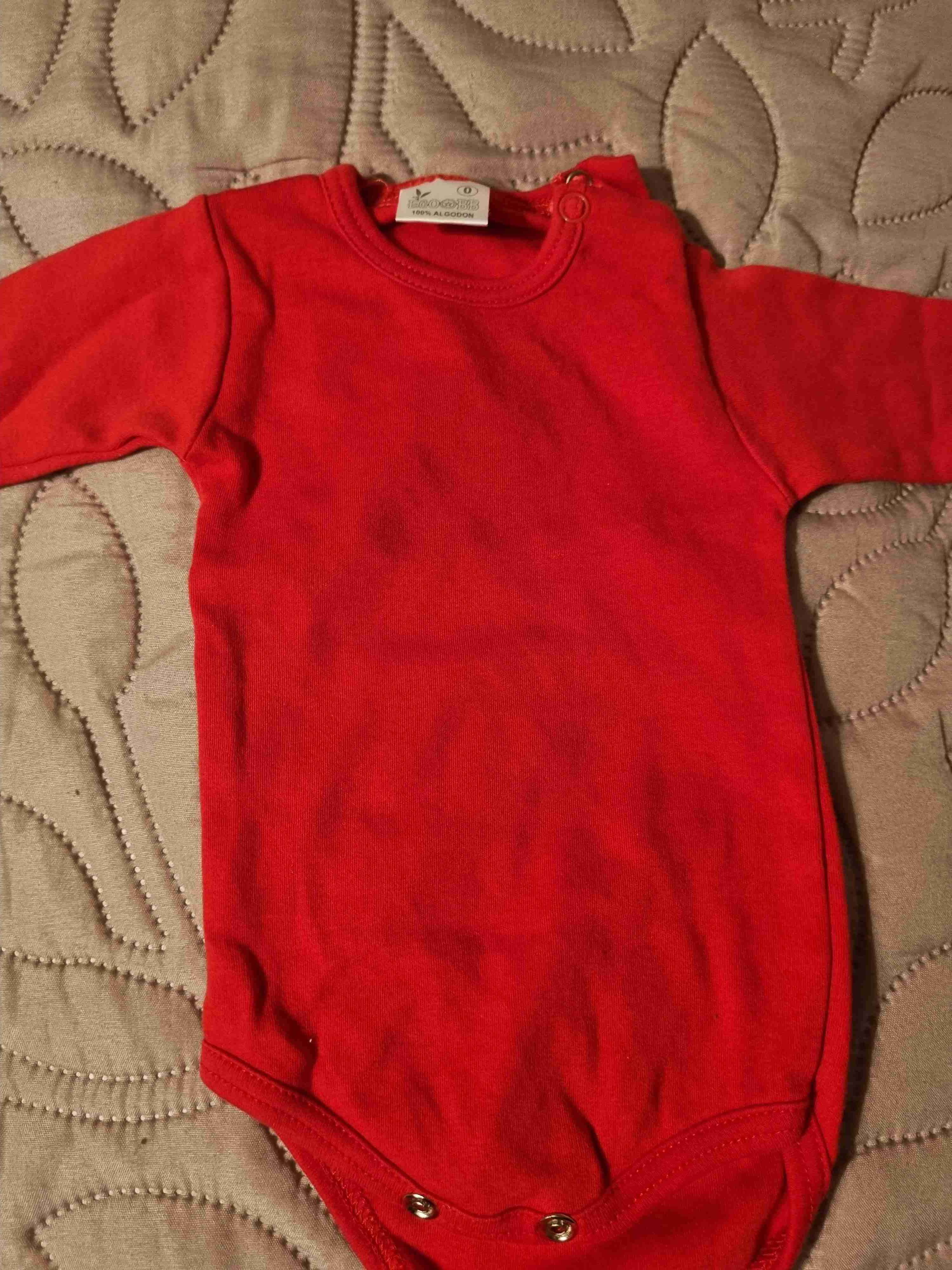 Body rojo para bebé de manga larga, suave y cómodo para el uso diario. En buen estado 3 piezas 0 meses.
