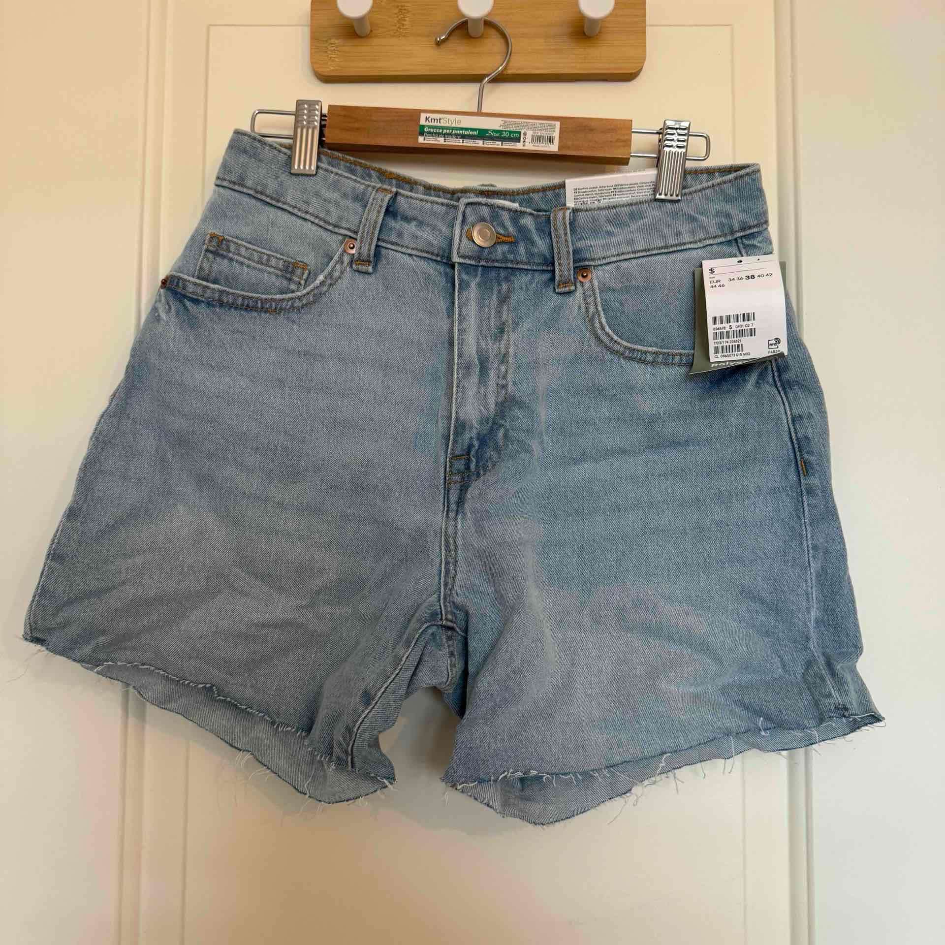 Shorts de mezclilla azul claro con bordes deshilachados, ideales para un look casual. En buen estado, perfectos para el verano.