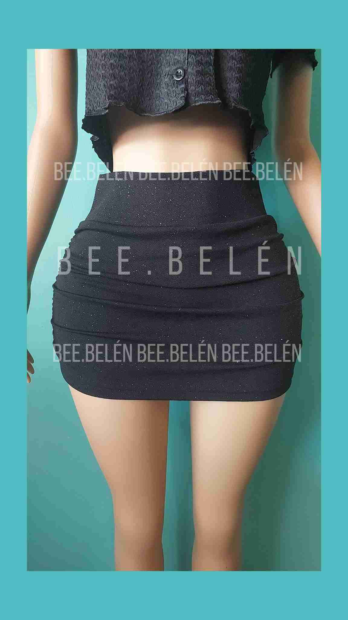 Falda negra ajustada con detalles brillantes, ideal para fiestas o salidas nocturnas. Nuevo, talla estandar que abarca hasta la xl
