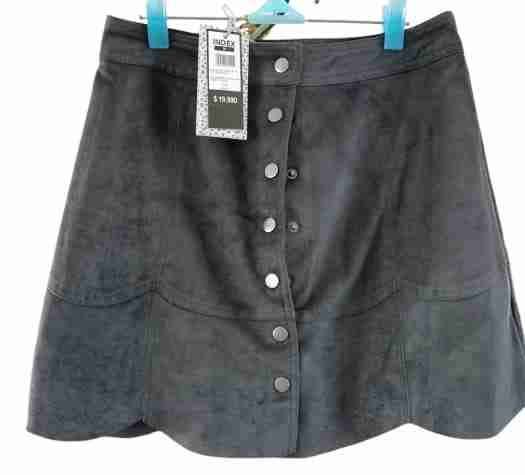 Cómoda falda negra con broches al frente, ideal para el día a día. Nueva con etiqueta.Talla M, Gamuza.
