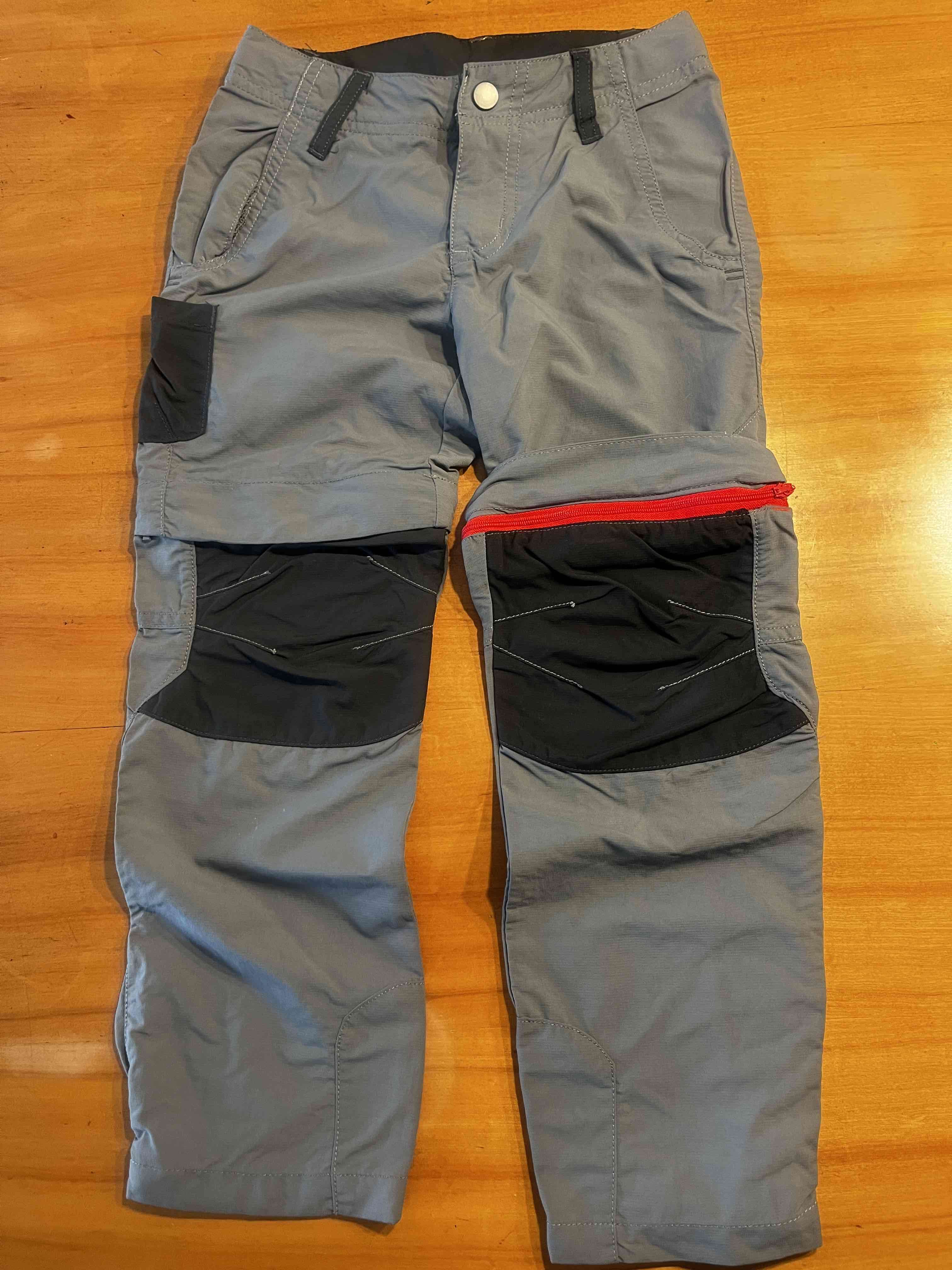 Pantalones de trekking gris, convertibles en short con cierre. En buen estado, ideales para actividades al aire libre.