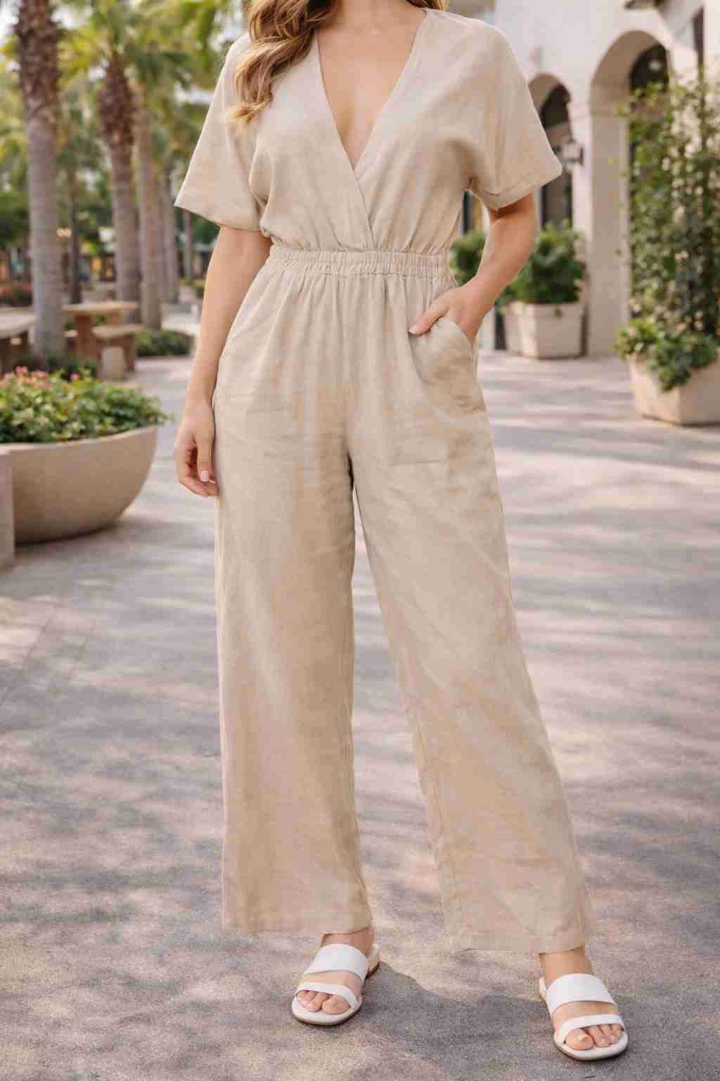 Enterito beige de estilo casual, ideal para días de verano. Tiene un diseño cómodo y fresco.