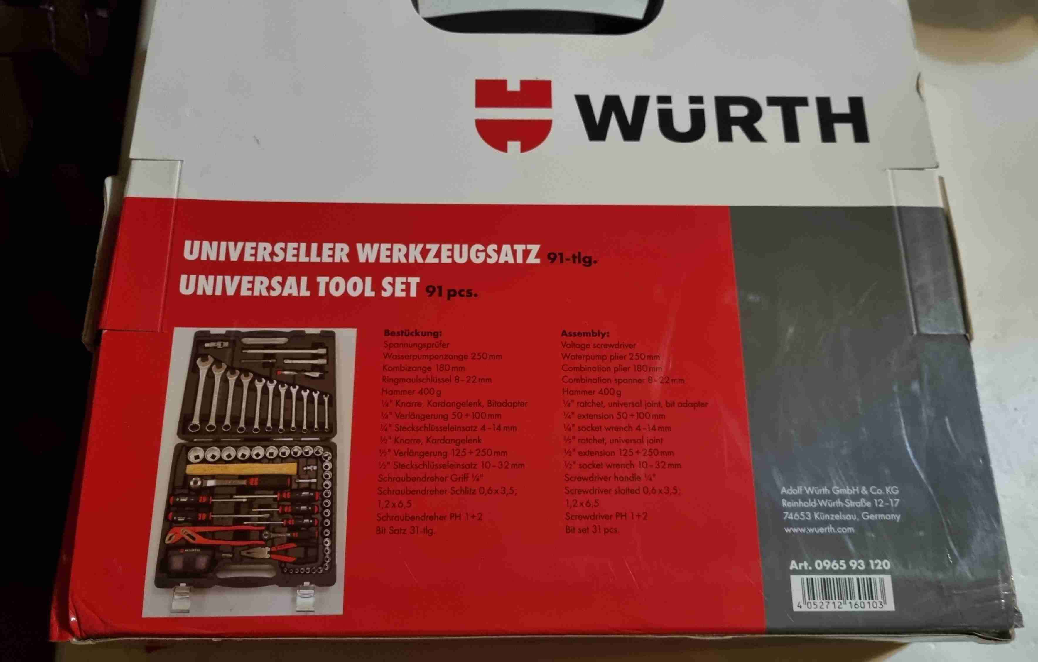 🔧 Set de herramientas Würth 91 piezas NUEVO Se vende set de herramientas marca Würth original de 91 piezas. ✔️ NUEVO, sin uso ✔️ Completo ✔️ Incluye dados, llaves, chicharras, extensiones, alicates y más ✔️ Maletín original resistente Herramientas de calidad profesional (línea Würth), ideales para mecánica, taller o uso en casa.