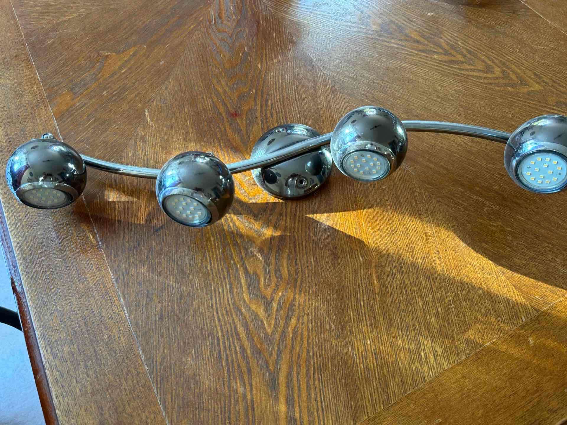 Elegante lámpara de techo curvada con cuatro focos LED, ideal para iluminar cualquier habitación. Se ve en buen estado.