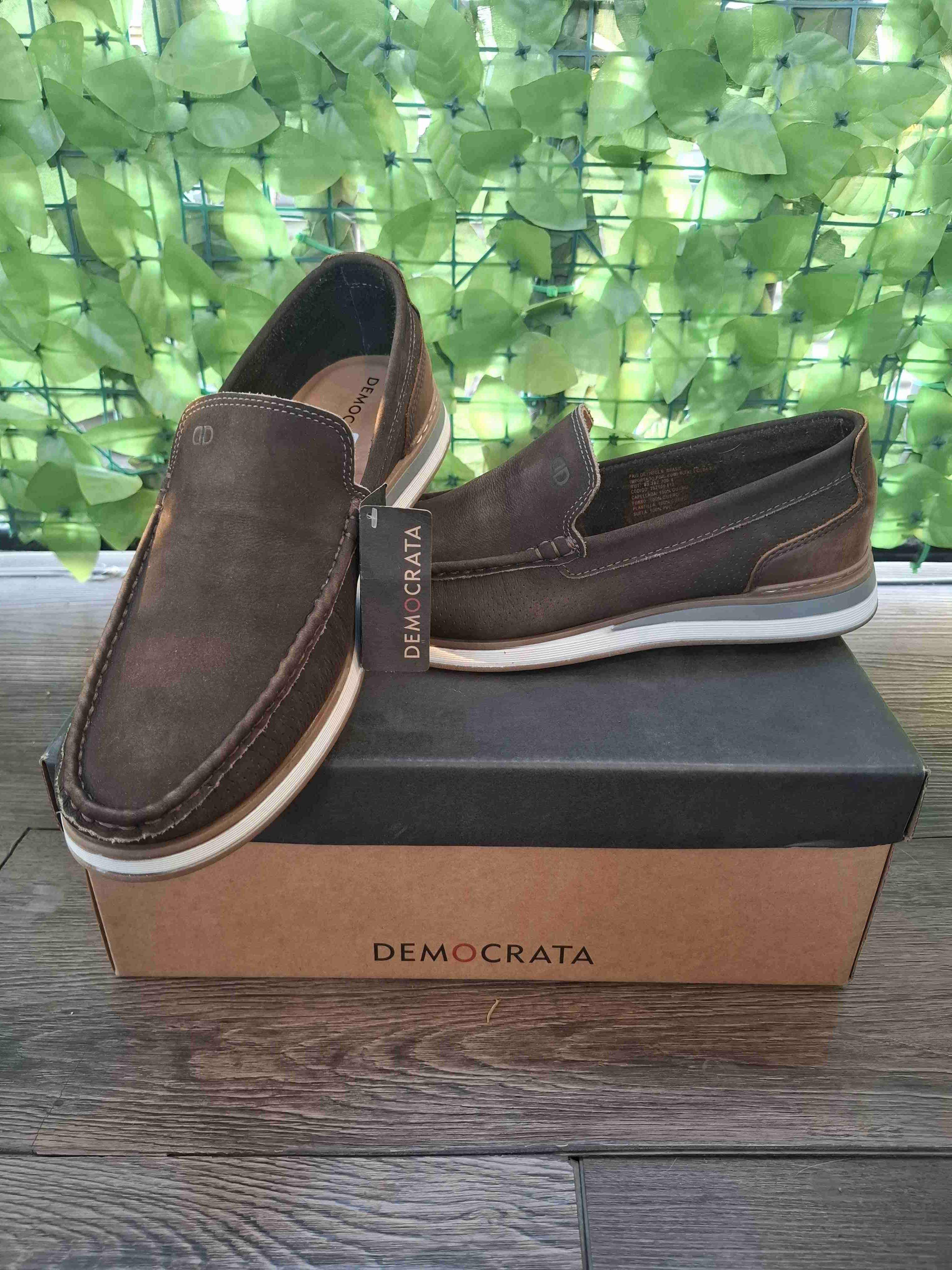 MOCASÍN DEMOCRATA FLOW DEMOCRATA Talla: 42 (28.5 cm) Marca: DEMOCRATA Material Zapato: Cuero Material Forro : Cuero Material Plantilla: Cuero Género: Hombre Estilo: Mocasín Tipo de cierre: Sin Cierre Ocasión: Casual Tipo Taco: Sin taco Altura del Taco: Sin Taco Tipo de Caña: Baja (1-2 cm) Material Suela: Sintético Modelo: FLOW Comodidad y estilo desde 1983. Iniciando su producción en Brasil, es una marca pionera en la confección de zapatos masculinos y en el desarrollo de la exclusiva tecnología Air, que trae las famosas burbujas de aire para ayudar a caminar con menos impacto. Actualmente, exporta a más de 60 países; incluyendo América Latina, Estados Unidos y Oriente Medio.