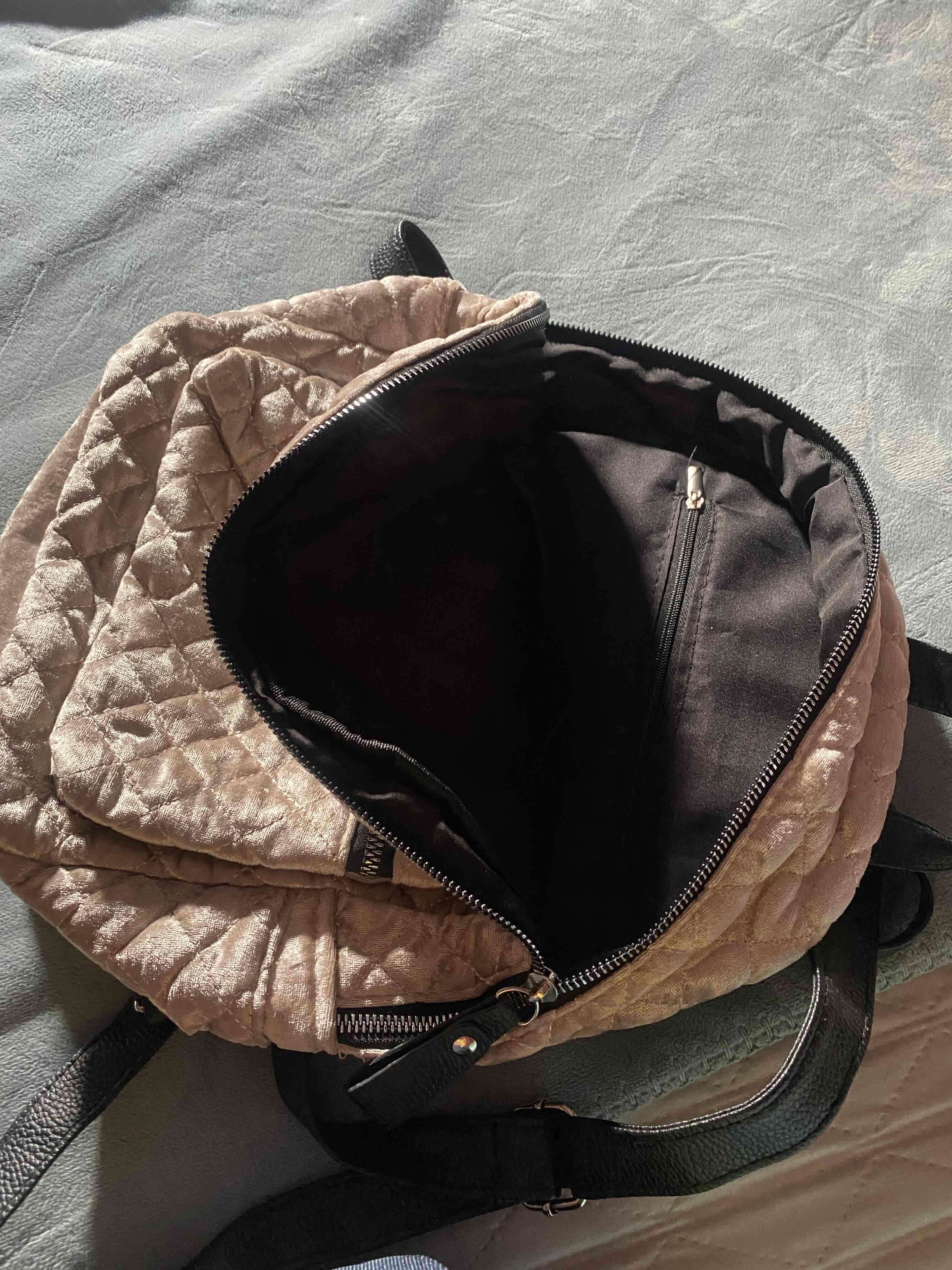 Mochila acolchada en tono beige, perfecta para uso diario. En buen estado general muy espaciosa , tamaño mediano