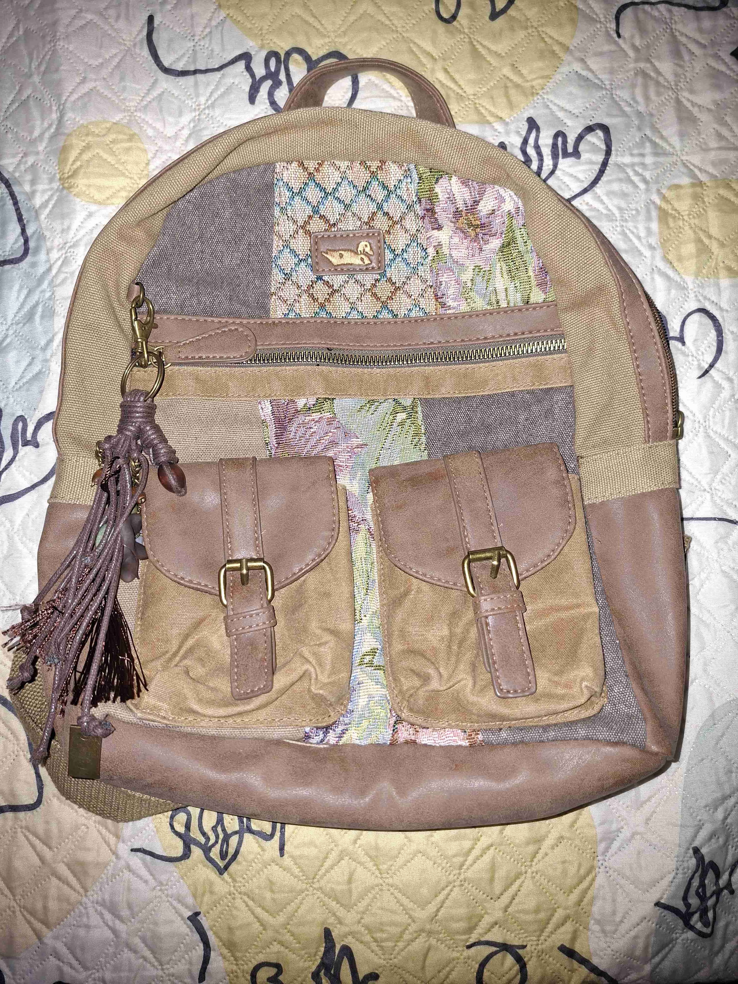 Mochila marca Rockford cómoda y versátil, con diseño patchwork. Excelente estado muy poco uso. Ancho: 32, Alto: 25, Profundidad: 11