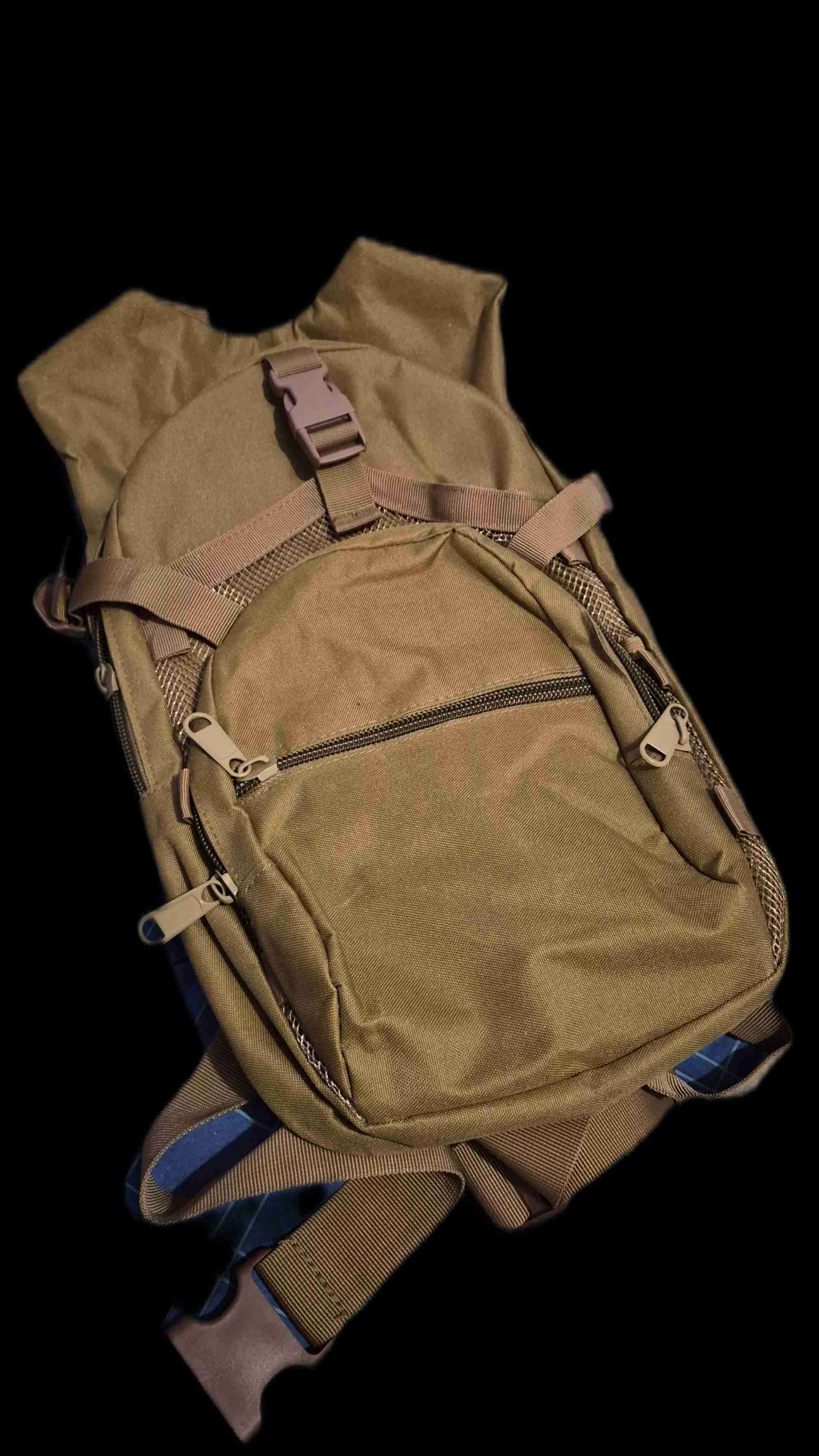 Mochila táctica color coyote de 15 litros, sin ningun tipo de uso, perfecta para hikking, trekking, senderismo ademas de uso para la cuidad Tiene amplios bolsillos, maya para cargar articulos, salida y bolsillo para bolsa de hidratacion ademas de riñonera y correa para pecho