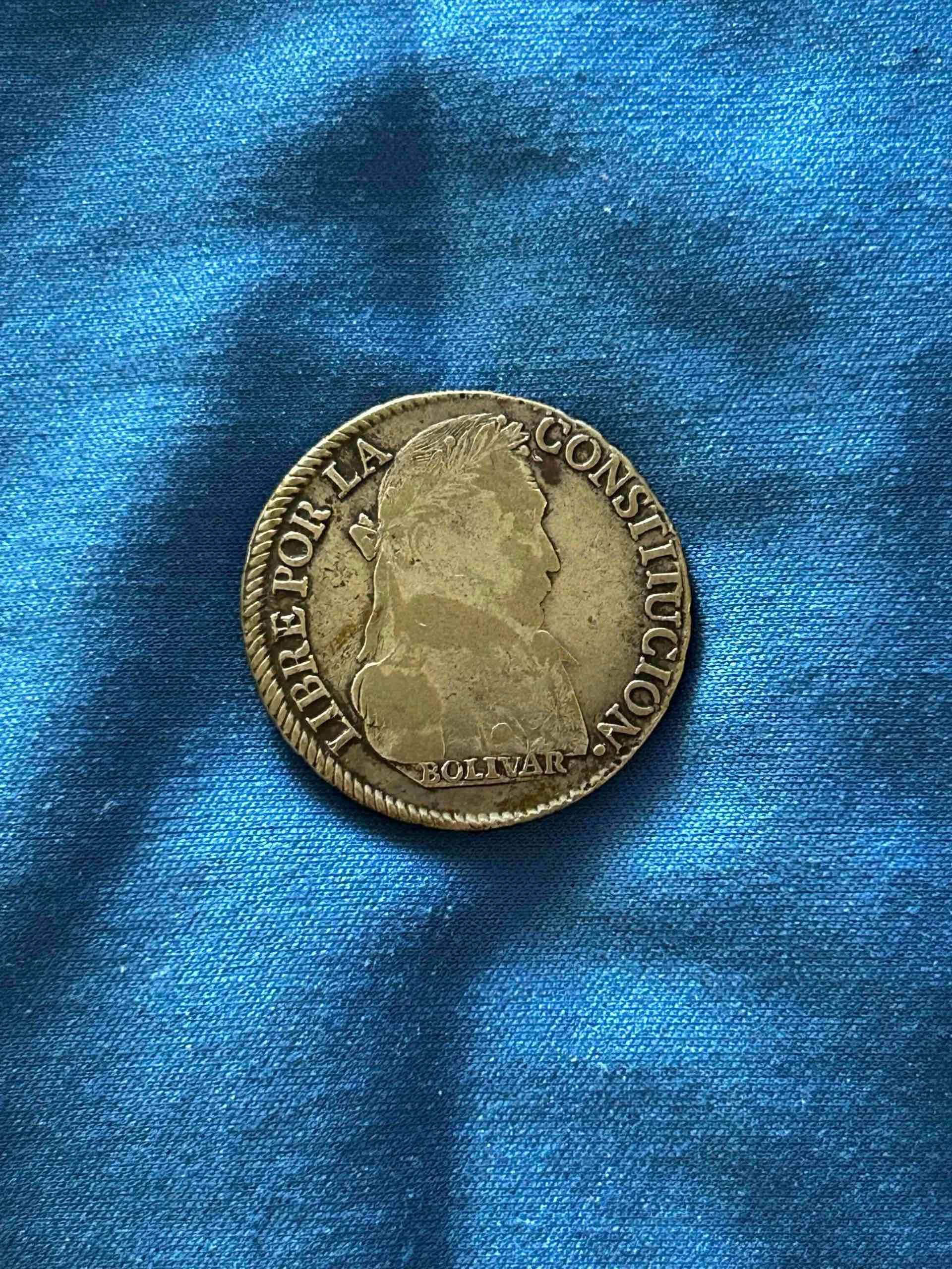 Moneda de plata antigua con la inscripción 'LIBRE POR LA CONSTITUCION - BOLIVAR'. 4S, año 1830 Ideal para coleccionistas, en buen estado.