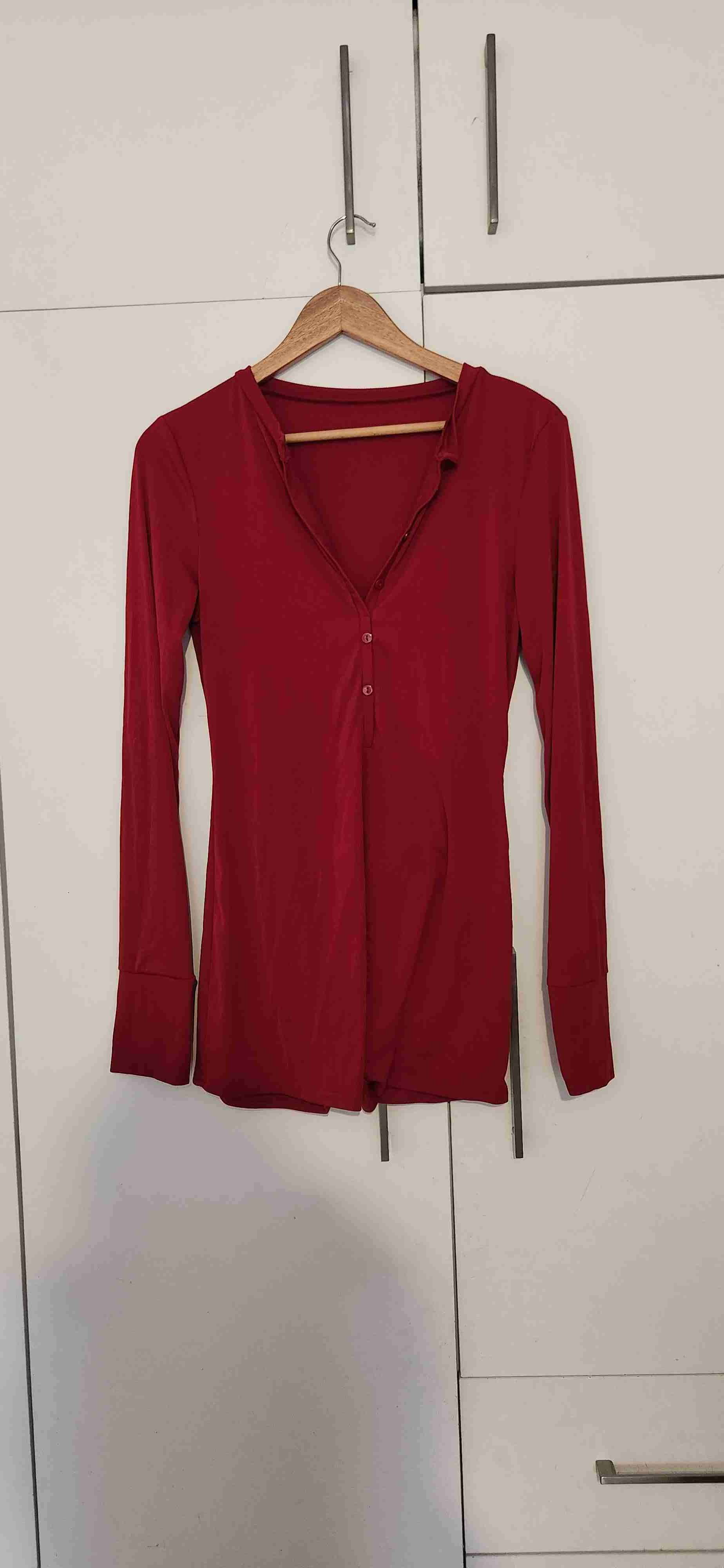 Mono rojo de manga larga, estilo casual con botones al frente. En buen estado, ideal para uso diario.