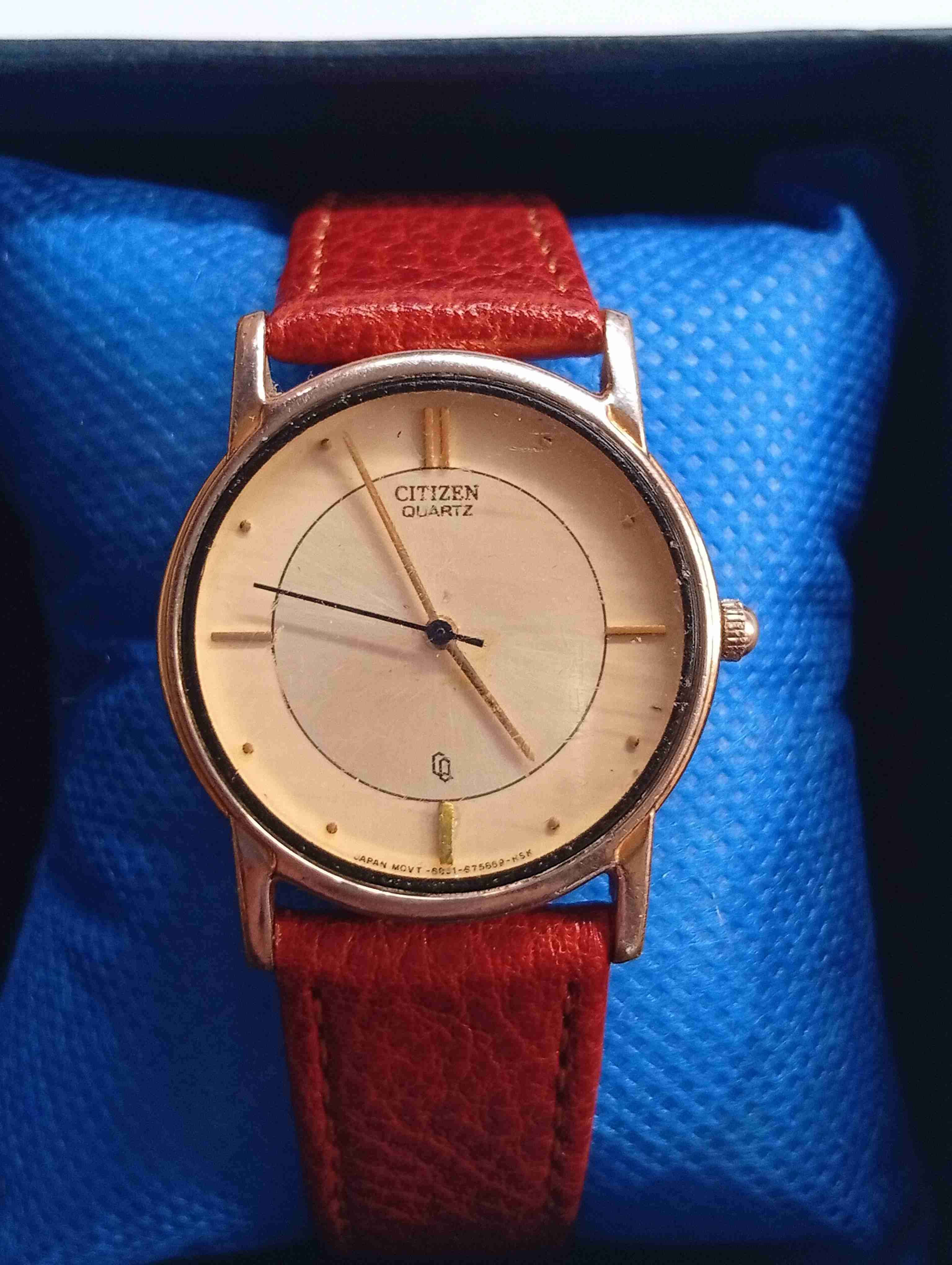 Reloj clásico Citizen de cuarzo con correa marrón. En buen estado, ideal para uso diario. Caja de 30mm. Funcionando perfectamente movimiento super miyota.