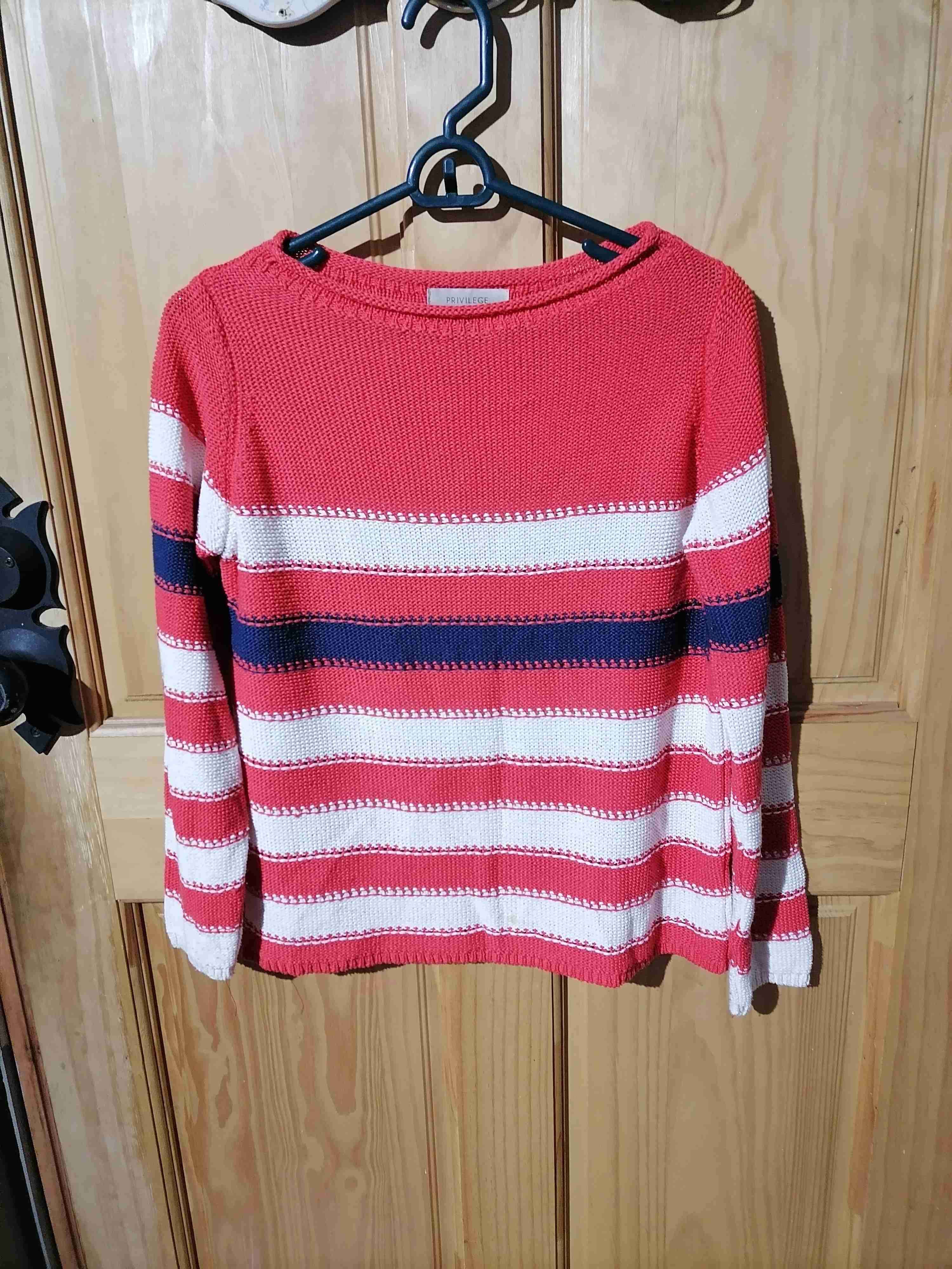 Suéter de rayas rojo, blanco y azul para clima fresco. En buen estado, ideal para uso diario.